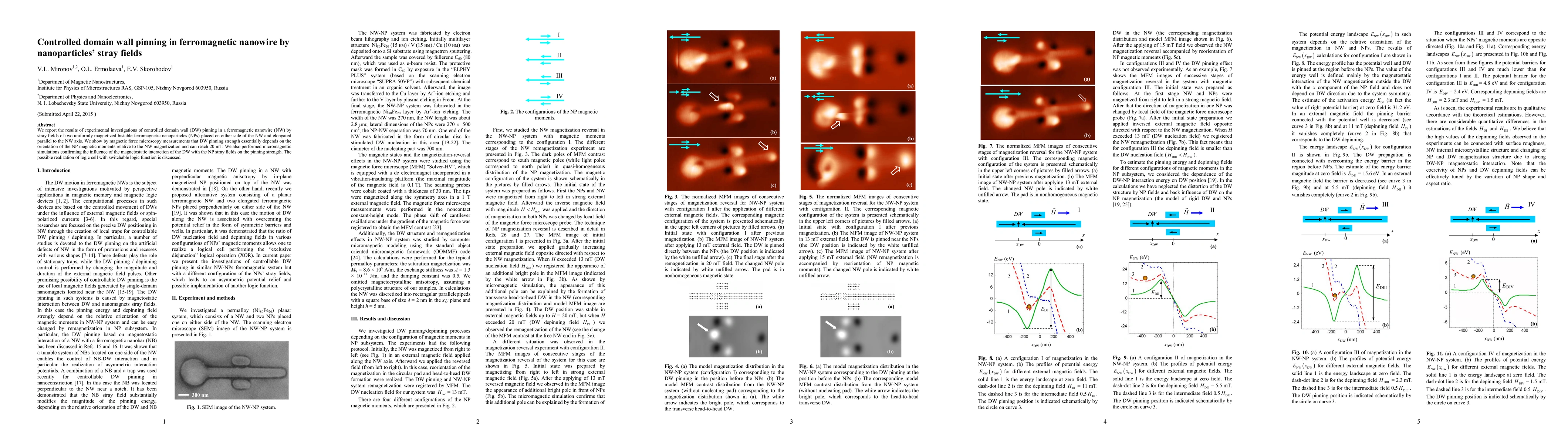 This study demonstrates controlled pinning of domain walls in ferromagnetic nanowires by stray fields from uniformly magnetized nanoparticles. Magnetic force microscopy reveals that the pinning strength depends on nanoparticle orientation and can reach 20 mT, supported by micromagnetic simulations, with potential implications for switchable logic cells.