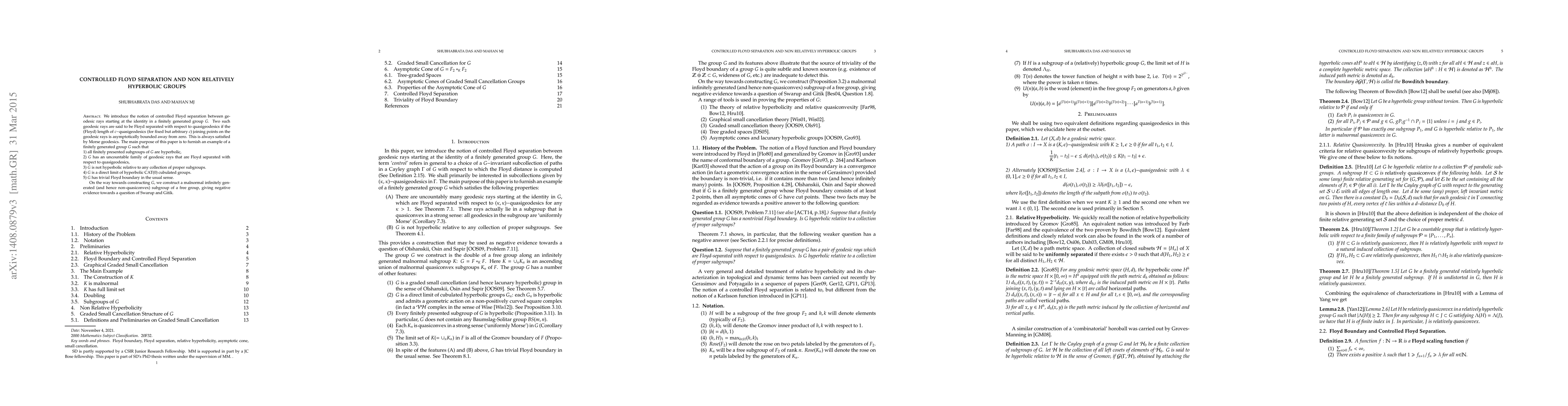 The paper presents a novel approach to defining controlled Floyd separation and demonstrates its application in constructing a group G with specific properties, bridging hyperbolic geometry and group theory.