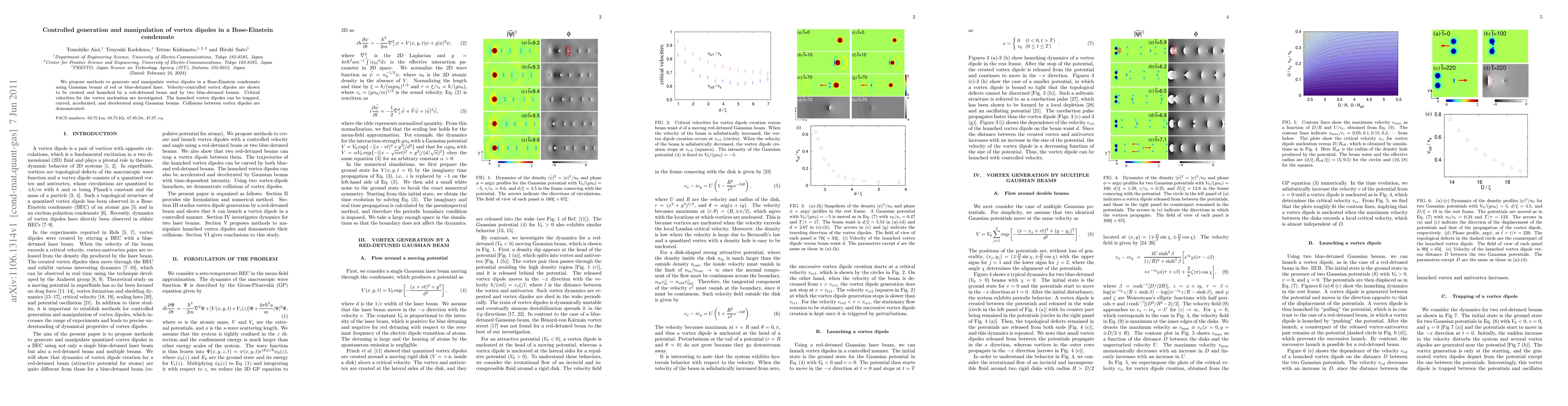This paper proposes methods to generate and manipulate vortex dipoles in a Bose-Einstein condensate using red or blue-detuned laser beams. Vortex dipoles can be controlled in velocity and direction, and their interactions, including collisions, are demonstrated.