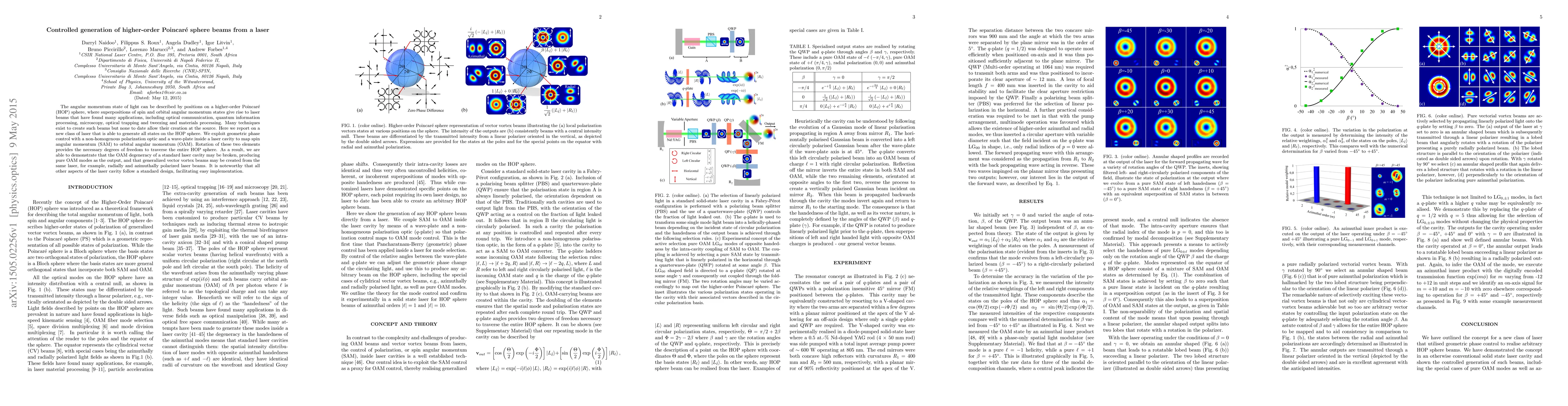 This paper introduces a novel laser capable of generating higher-order Poincaré sphere beams by controlling geometric phase through a non-homogeneous polarization optic and a wave-plate. This allows for the creation of pure orbital angular momentum modes and generalized vector vortex beams, facilitating applications in optical communication and quantum information processing.