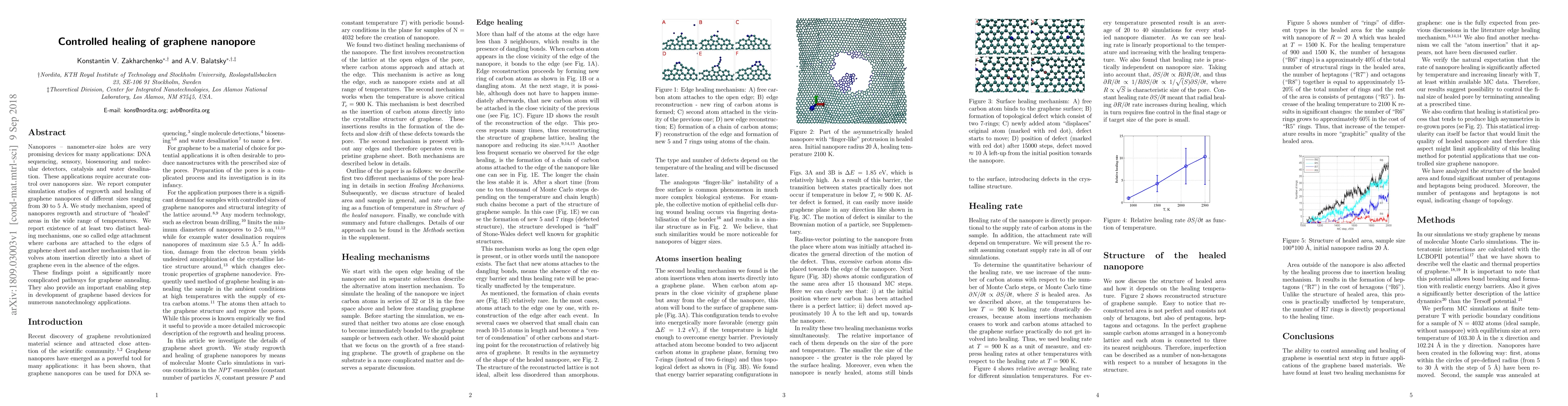 The study investigates the controlled healing of graphene nanopores through simulation, identifying two distinct regrowth mechanisms: edge attachment and atom insertion. These findings offer insights into more complex pathways for graphene annealing, crucial for advancing graphene-based nanodevices.