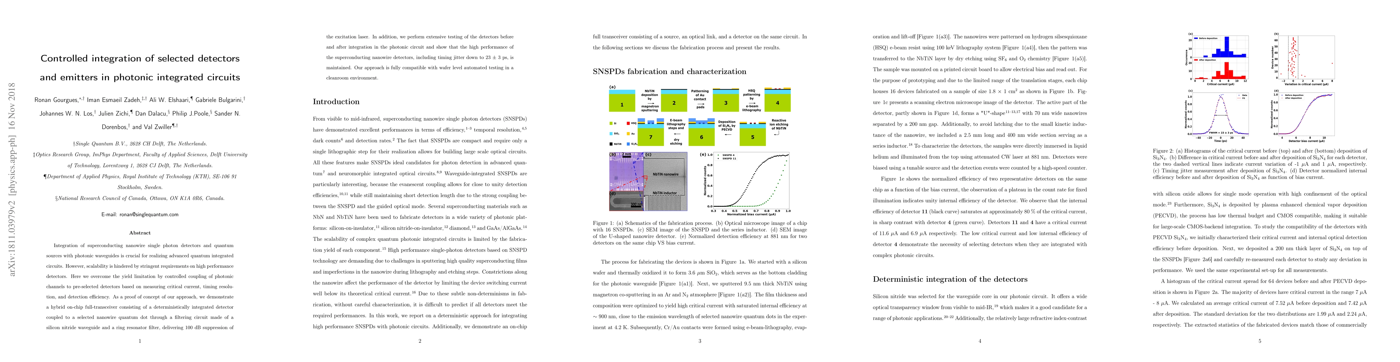Researchers developed a method to control the integration of superconducting nanowire detectors with photonic circuits, achieving 100 dB suppression of laser excitation and maintaining high detector performance after integration. The approach enables scalable quantum integrated circuits.