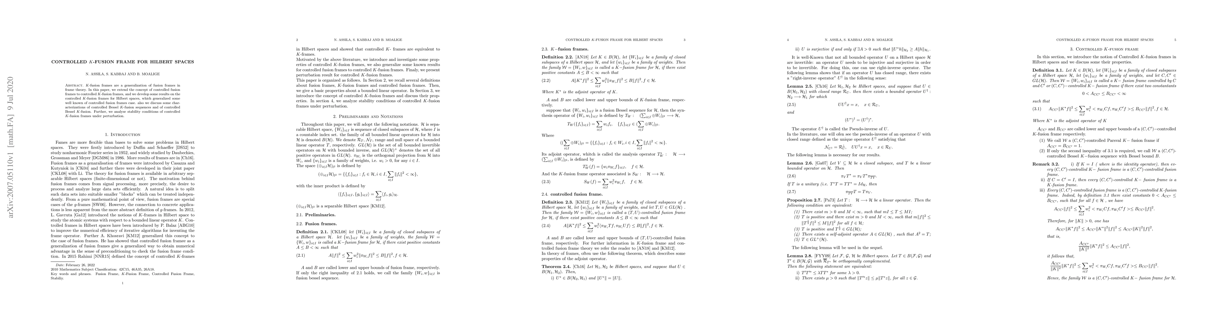 $K$-fusion frames are a generalization of fusion frames in frame theory. In this paper, we extend the concept of controlled fusion frames to controlled $K$-fusion frames, and we develop some results on the controlled $K$-fusion frames for Hilbert spaces, which generalized some well known of controlled fusion frames case. also we discuss some characterizations of controlled Bessel $K$-fusion sequences and of controlled Bessel $K$-fusion. Further, we analyse stability conditions of controlled $K$-fusion frames under perturbation.