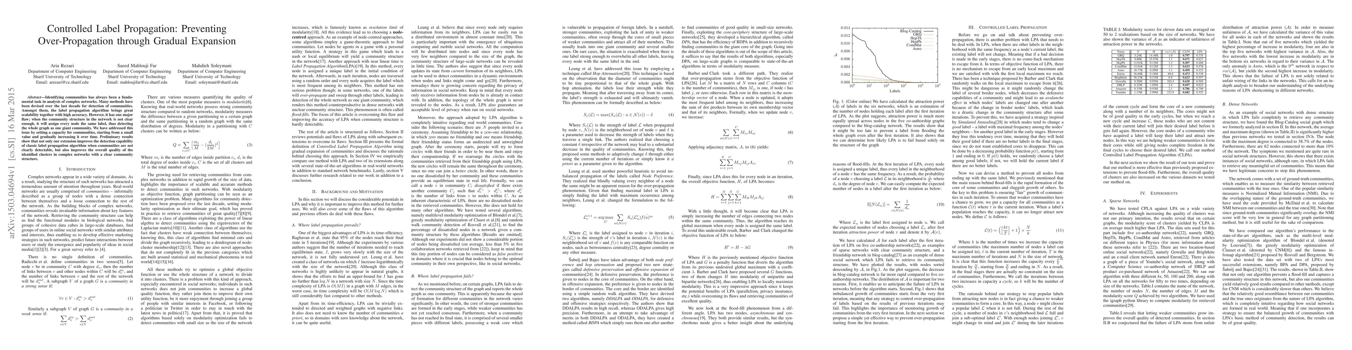Title: Controlled Label Propagation: Preventing Over-Propagation through Gradual Expansion Summary: This paper introduces a modified label propagation algorithm that gradually expands community detection capacity to prevent over-propagation and improve cluster quality, especially in networks with ambiguous community structures.