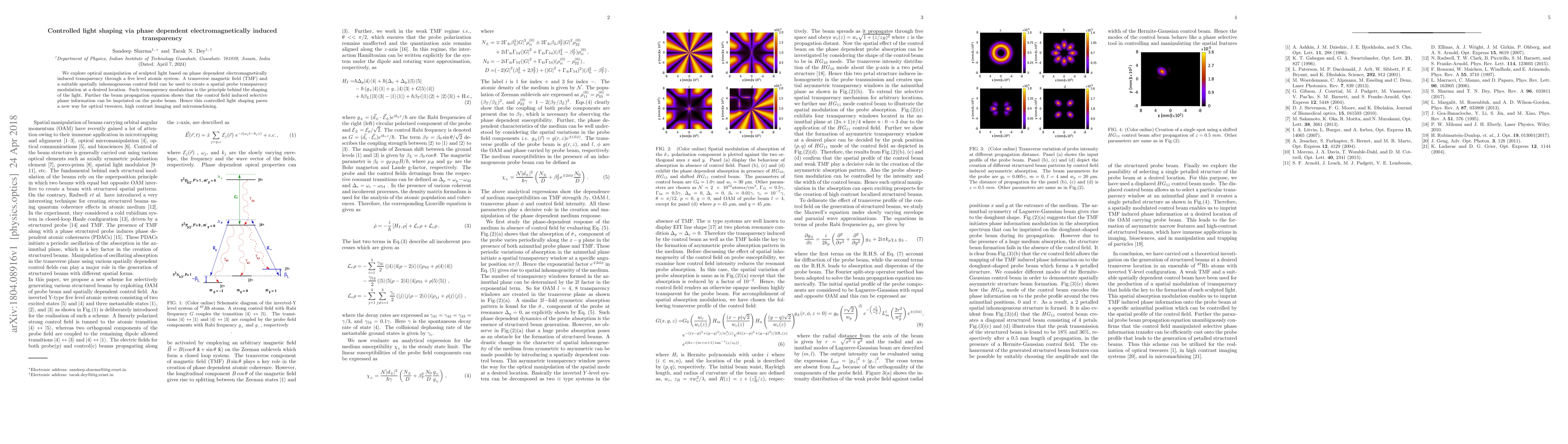 This research explores the optical manipulation of sculpted light using phase-dependent electromagnetically induced transparency in a five-level atomic system. By employing a transverse magnetic field and a spatially inhomogeneous control field, it creates spatial probe transparency modulation, enabling controlled light shaping for applications in optical tweezers, high-contrast imaging, and micromachining.