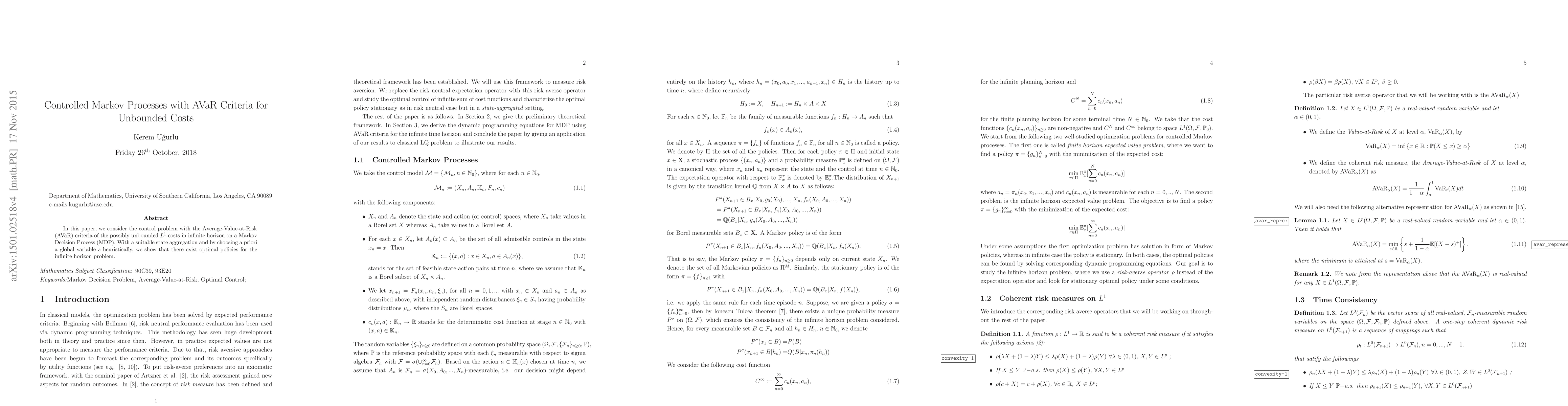 In this paper, we consider the control problem with the Average-Value-at-Risk (AVaR) criteria of the possibly unbounded $L^{1}$-costs in infinite horizon on a Markov Decision Process (MDP). With a suitable state aggregation and by choosing a priori a global variable $s$ heuristically, we show that there exist optimal policies for the infinite horizon problem. To our knowledge, this is the first work of deriving dynamic programming equations with $L^1$-unbounded costs via AVaR-operator.