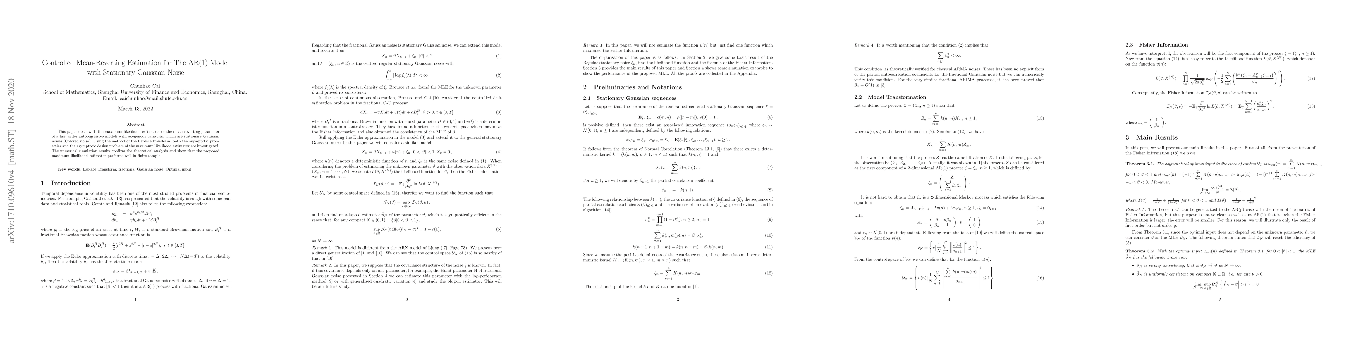 This paper deals with the maximum likelihood estimator for the mean-reverting parameter of a first order autoregressive models with exogenous variables, which are stationary Gaussian noises (Colored noise). Using the method of the Laplace transform, both the asymptotic properties and the asymptotic design problem of the maximum likelihood estimator are investigated. The numerical simulation results confirm the theoretical analysis and show that the proposed maximum likelihood estimator performs well in finite sample.