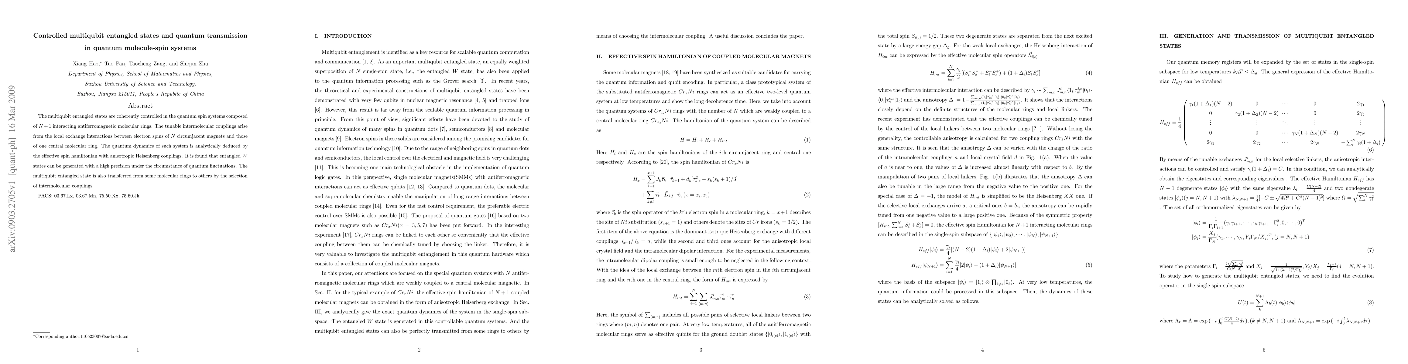 he multiqubit entangled states are coherently controlled in the quantum spin systems composed of $N+1$ interacting antiferromagnetic molecular rings. The tunable intermolecular couplings arise from the local exchange interactions between electron spins of $N$ circumjacent magnets and those of one central molecular ring. The quantum dynamics of such system is analytically deduced by the effective spin hamiltonian with anisotropic Heisenberg couplings. It is found that entangled $W$ states can be generated with a high precision under the circumstance of quantum fluctuations. The multiqubit entangled state is also transferred from some molecular rings to others by the selection of intermolecular couplings.