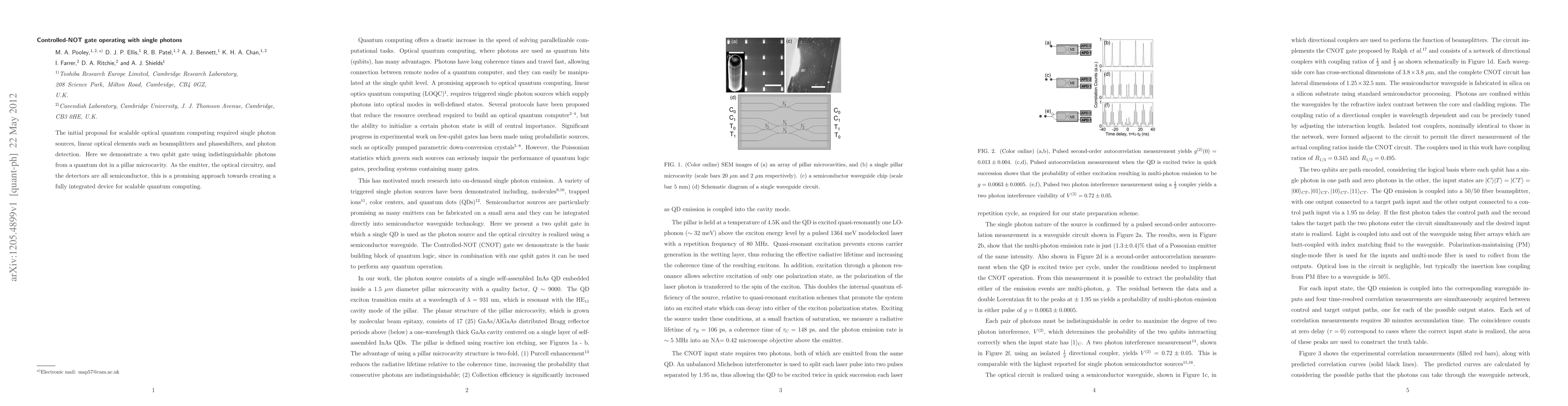The initial proposal for scalable optical quantum computing required single photon sources, linear optical elements such as beamsplitters and phaseshifters, and photon detection. Here we demonstrate a two qubit gate using indistinguishable photons from a quantum dot in a pillar microcavity. As the emitter, the optical circuitry, and the detectors are all semiconductor, this is a promising approach towards creating a fully integrated device for scalable quantum computing.