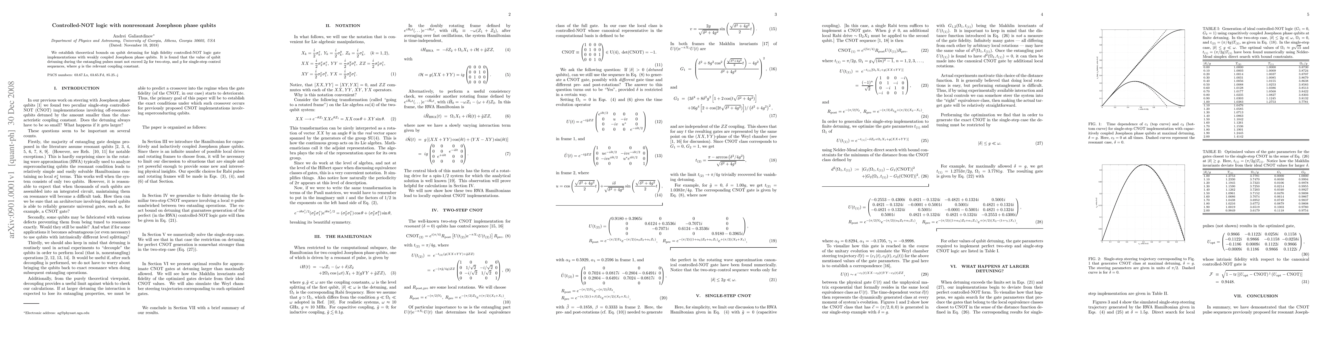 This paper establishes theoretical limits on qubit detuning for high fidelity controlled-NOT logic gates using nonresonant Josephson phase qubits, finding that detuning should not exceed 2g for two-step and g for single-step control sequences to maintain fidelity.