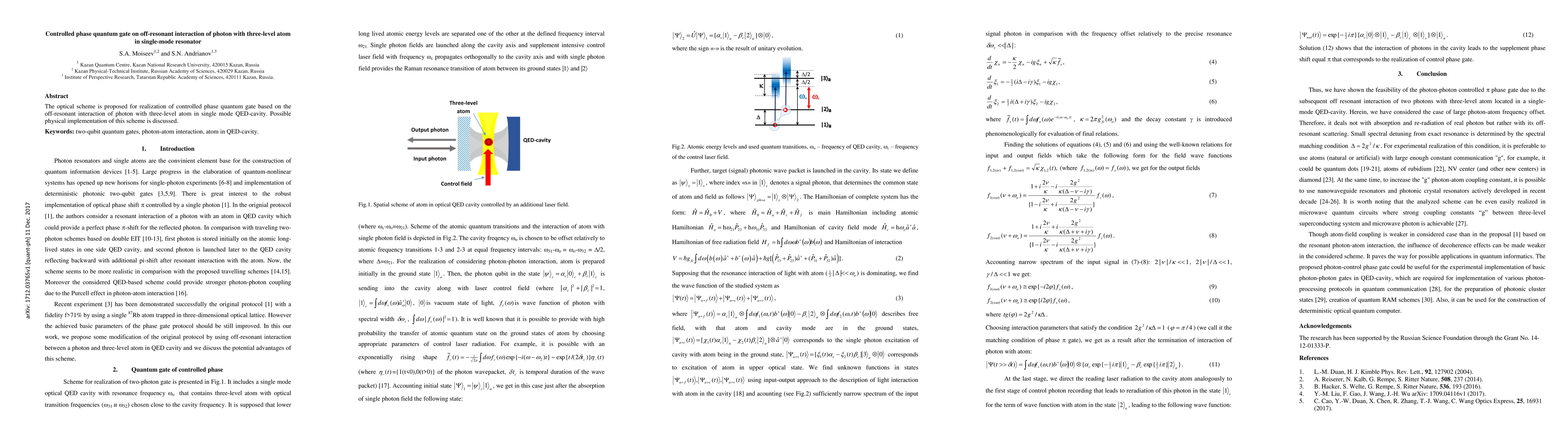 Summary: This paper proposes a novel optical scheme for a controlled phase quantum gate using off-resonant interaction between a photon and a three-level atom within a single-mode cavity, and explores potential physical implementations for this quantum gate.