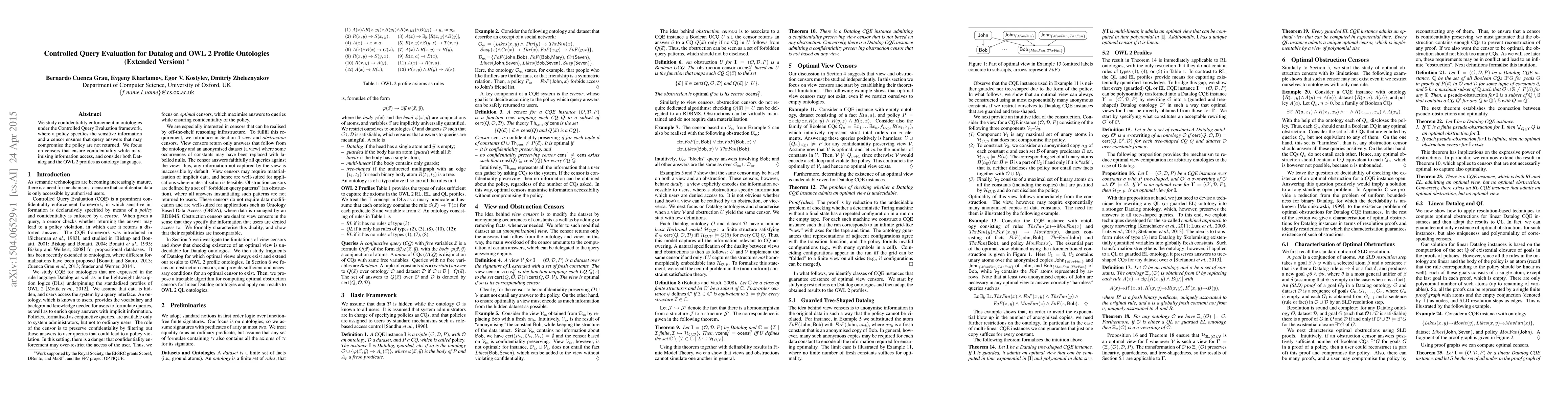 We study confidentiality enforcement in ontologies under the Controlled Query Evaluation framework, where a policy specifies the sensitive information and a censor ensures that query answers that may compromise the policy are not returned. We focus on censors that ensure confidentiality while maximising information access, and consider both Datalog and the OWL 2 profiles as ontology languages.