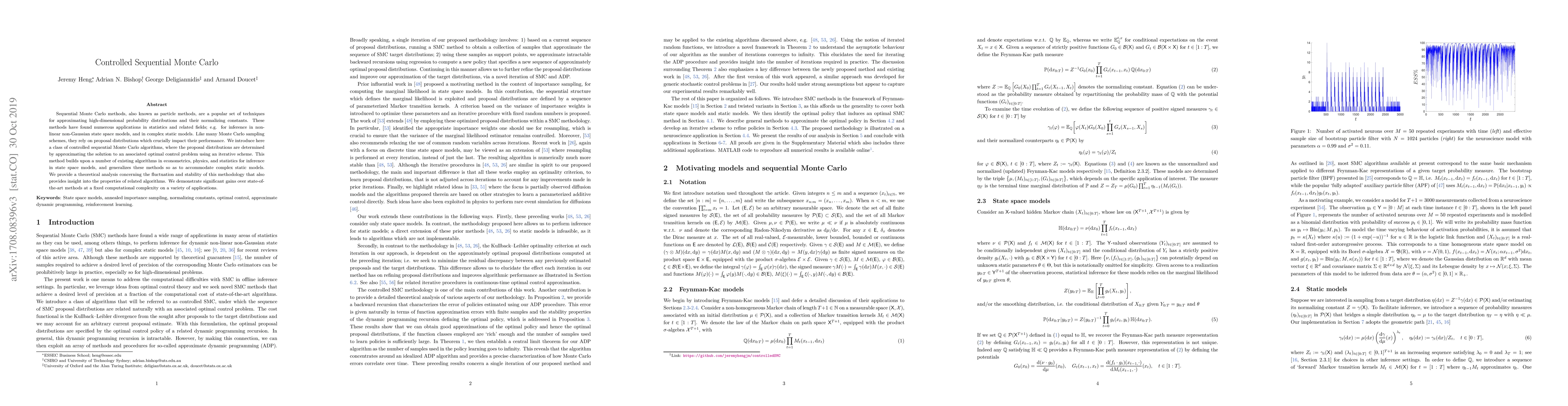 This paper introduces controlled sequential Monte Carlo algorithms that optimize proposal distributions through an associated optimal control problem, significantly improving performance over existing methods in complex static and state space models while maintaining computational efficiency. Theoretical analysis provides insights into the stability and fluctuations of these algorithms.