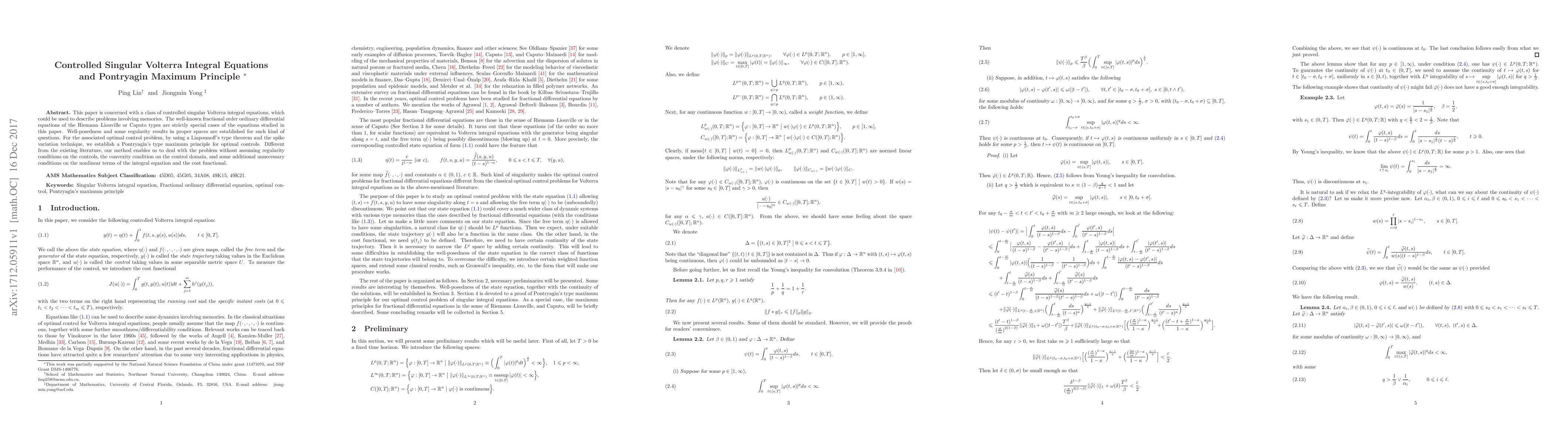 This paper investigates controlled singular Volterra integral equations, establishing well-posedness and regularity results. It introduces a Pontryagin-type maximum principle for optimal control without requiring regularity conditions on controls or convexity, differing from existing literature.