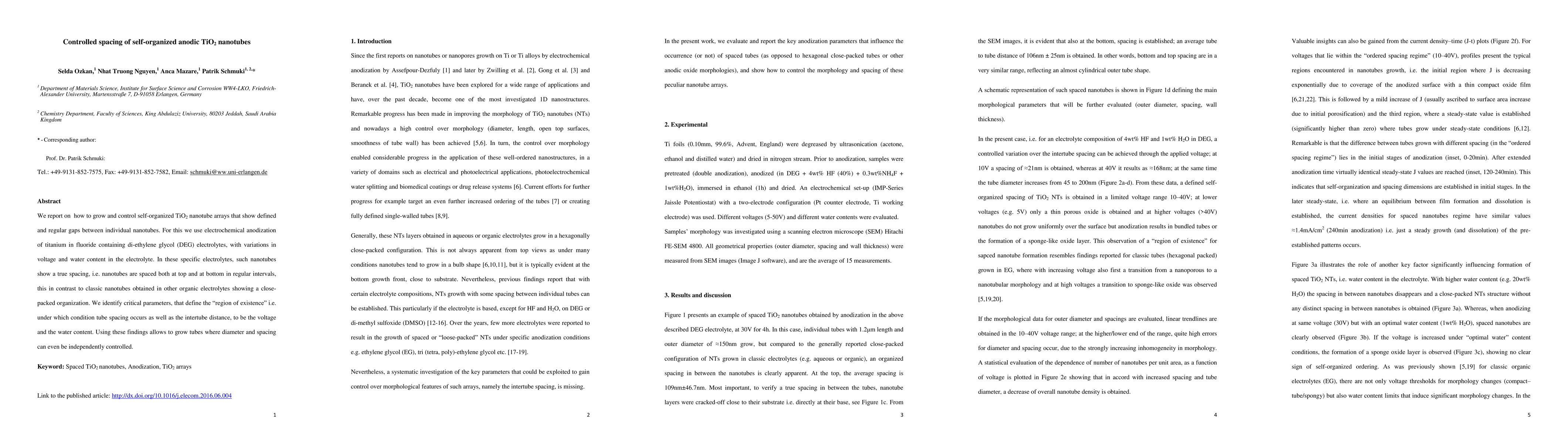 We report on how to grow and control self-organized TiO2 nanotube arrays that show defined and regular gaps between individual nanotubes. For this we use electrochemical anodization of titanium in fluoride containing di-ethylene glycol (DEG) electrolytes, with variations in voltage and water content in the electrolyte. In these specific electrolytes, such nanotubes show a true spacing, i.e. nanotubes are spaced both at top and at bottom in regular intervals, this in contrast to classic nanotubes obtained in other organic electrolytes showing a close-packed organization. We identify critical parameters, that define the region of existence i.e. under which condition tube spacing occurs as well as the intertube distance, to be the voltage and the water content. Using these findings allows to grow tubes where diameter and spacing can even be independently controlled.