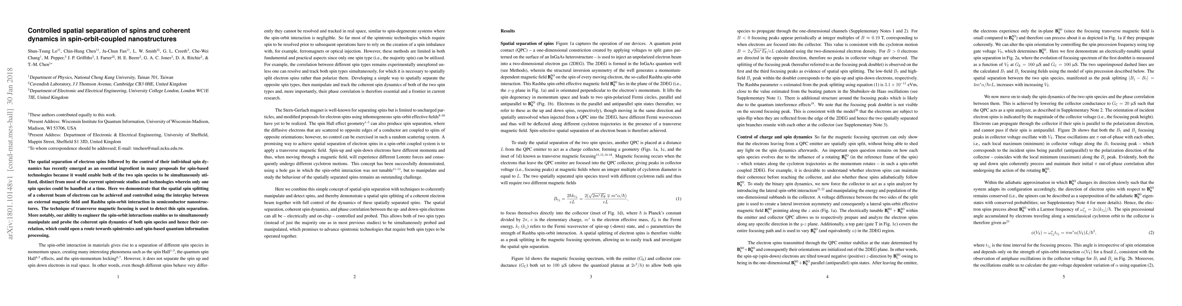 This paper demonstrates the spatial separation of electron spins in semiconductor nanostructures using external magnetic fields and Rashba spin-orbit interaction, enabling control over both spin species. The technique allows for manipulation and probing of coherent spin dynamics, potentially advancing spintronics and quantum information processing.