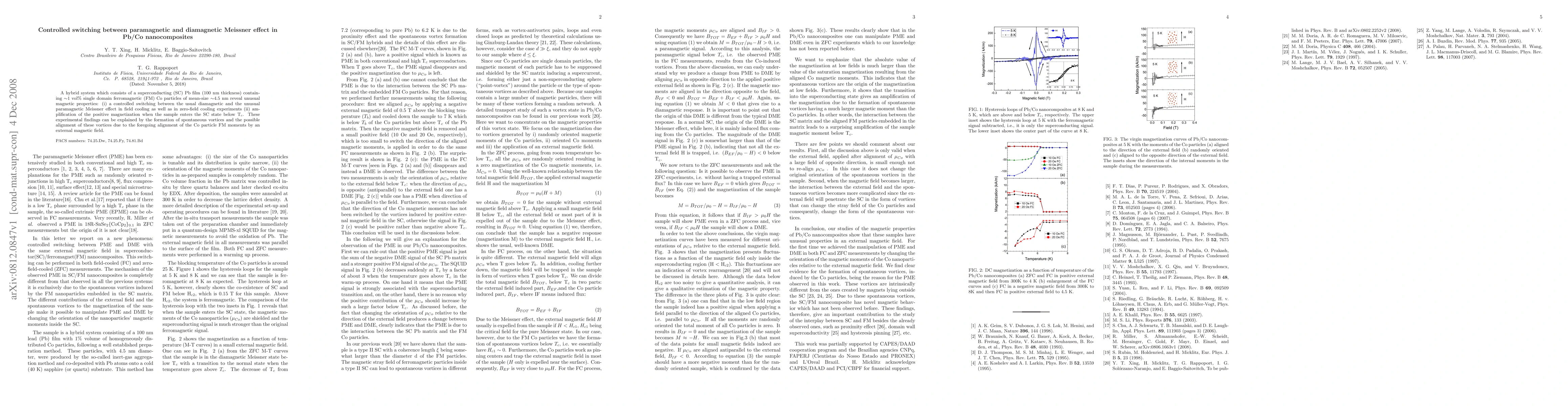 The research explores Pb/Co nanocomposites, demonstrating controlled switching between diamagnetic and paramagnetic Meissner effect. This is attributed to spontaneous vortex formation and alignment of Co particle FM moments by external magnetic fields, with implications for superconductivity and magnetism studies.