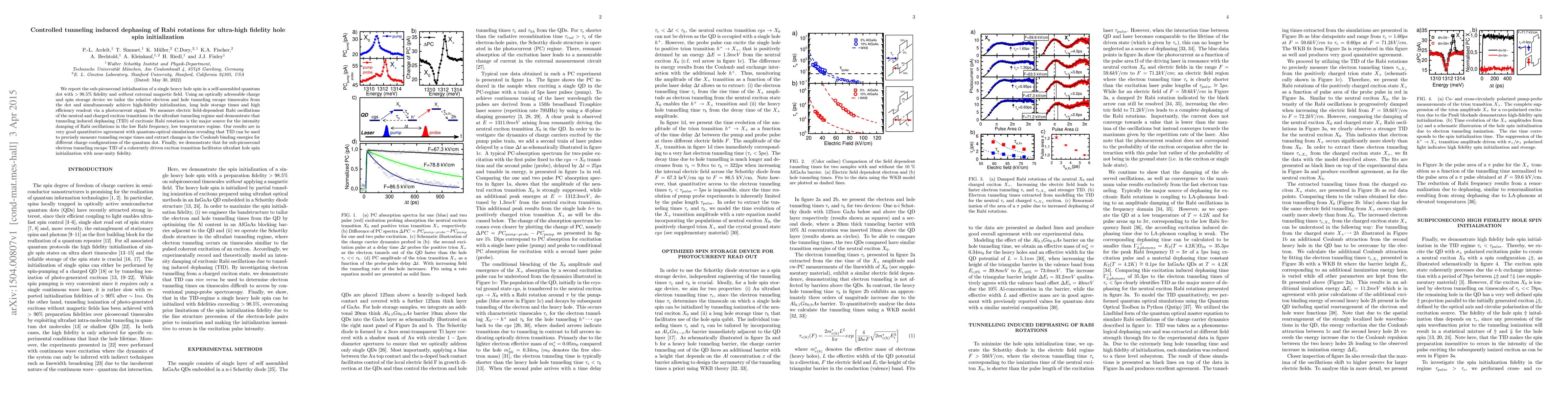 This paper reports the sub-picosecond initialization of a single heavy hole spin in a quantum dot with >98.5% fidelity, achieved through controlled tunneling and dephasing, demonstrating the potential for precise measurement of tunneling dynamics and Coulomb binding energies.