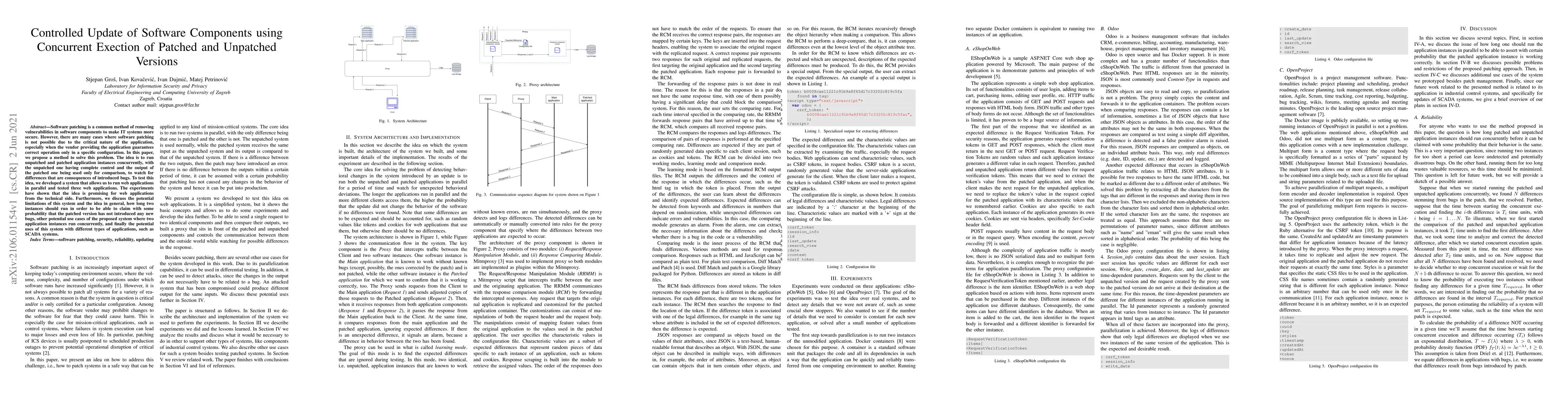 Software patching is a common method of removing vulnerabilities in software components to make IT systems more secure. However, there are many cases where software patching is not possible due to the critical nature of the application, especially when the vendor providing the application guarantees correct operation only in a specific configuration. In this paper, we propose a method to solve this problem. The idea is to run unpatched and patched application instances concurrently, with the unpatched one having complete control and the output of the patched one being used only for comparison, to watch for differences that are consequences of introduced bugs. To test this idea, we developed a system that allows us to run web applications in parallel and tested three web applications. The experiments have shown that the idea is promising for web applications from the technical side. Furthermore, we discuss the potential limitations of this system and the idea in general, how long two instances should run in order to be able to claim with some probability that the patched version has not introduced any new bugs, other potential use cases of the proposed system where two application instances run concurrently, and finally the potential uses of this system with different types of applications, such as SCADA systems.