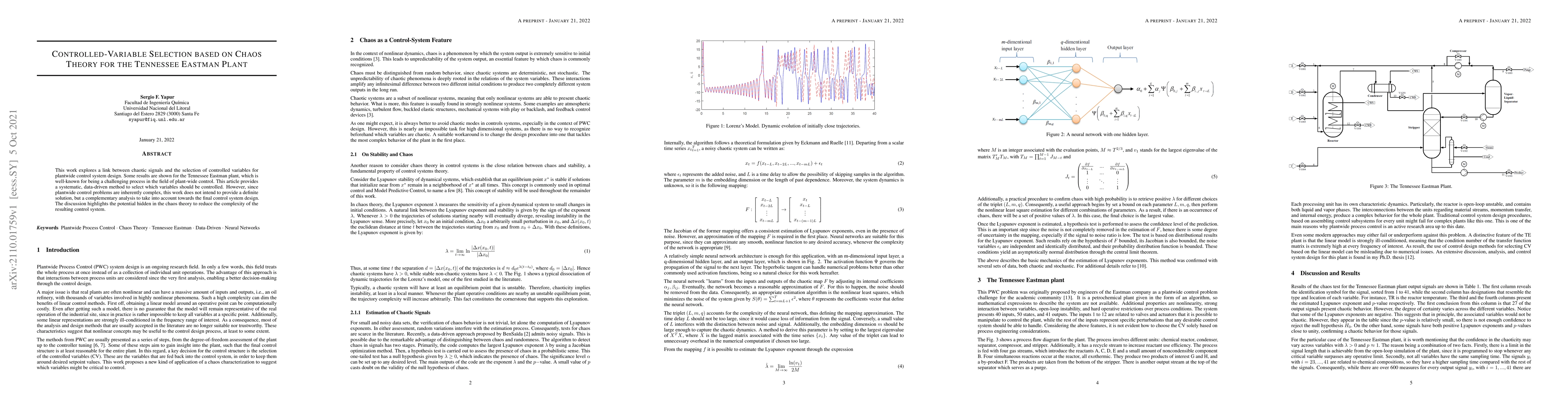 This work explores a link between chaotic signals and the selection of controlled variables for plantwide control system design. Some results are shown for the Tennessee Eastman plant, which is well-known for being a challenging process in the field of plant-wide control. This article provides a systematic, data-driven method to select which variables should be controlled. However, since plantwide control problems are inherently complex, this work does not intend to provide a definite solution, but a complementary analysis to take into account towards the final control system design. The discussion highlights the potential hidden in the chaos theory to reduce the complexity of the resulting control system.
