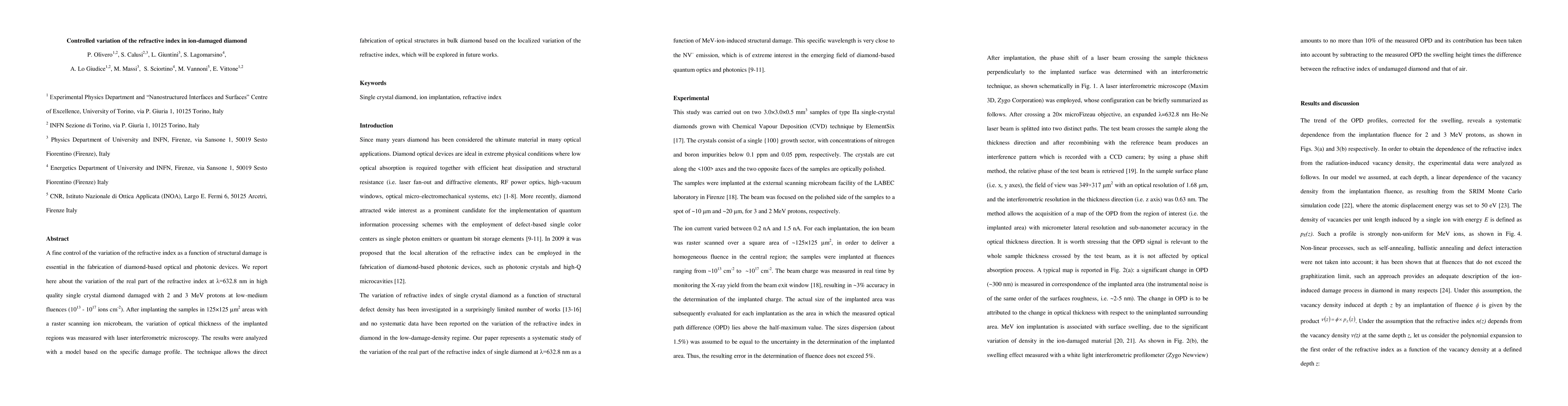 This paper investigates the controlled variation of the refractive index in proton-damaged diamond, achieving precise optical thickness measurements using laser interferometric microscopy. The study demonstrates the potential for fabricating optical structures in bulk diamond through localized refractive index changes.