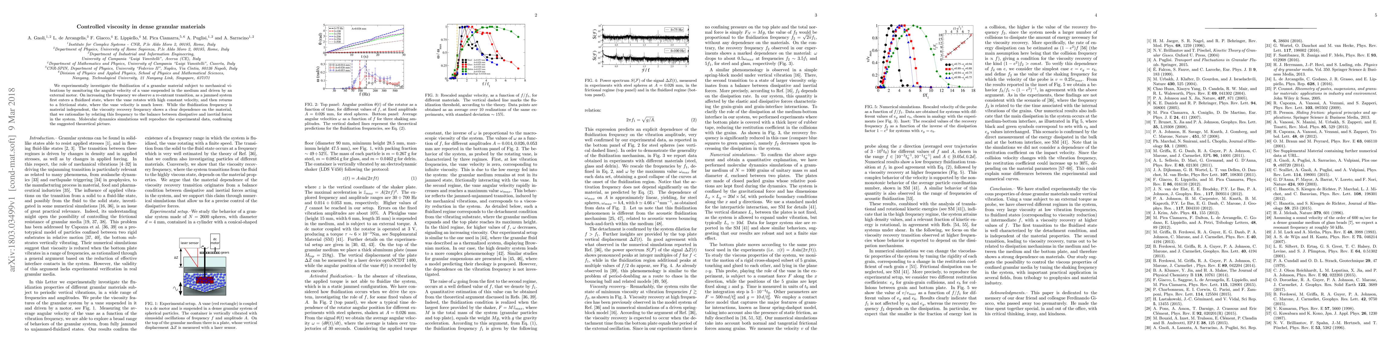 Researchers study how a vibrating vane affects fluidization in dense granular materials, finding that fluidization frequency is independent of material but viscosity recovery frequency depends on the material.