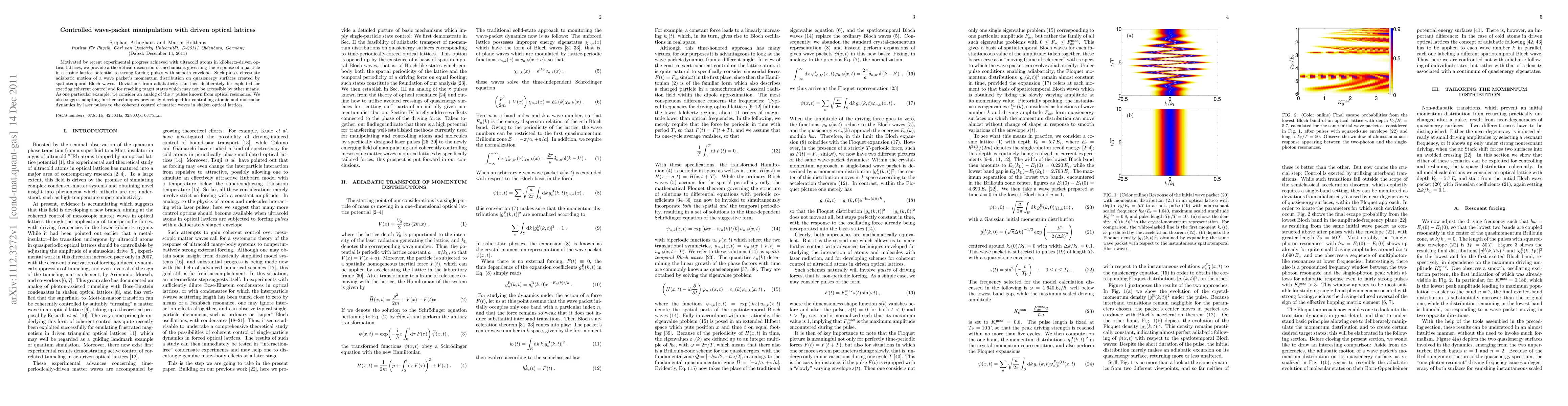 This paper discusses mechanisms for manipulating wave packets in optical lattices using strong forcing pulses, achieving adiabatic motion and exploiting deviations for coherent control, exemplified by analogs of π-pulses, and suggests extending laser pulse control techniques to matter waves in driven optical lattices.