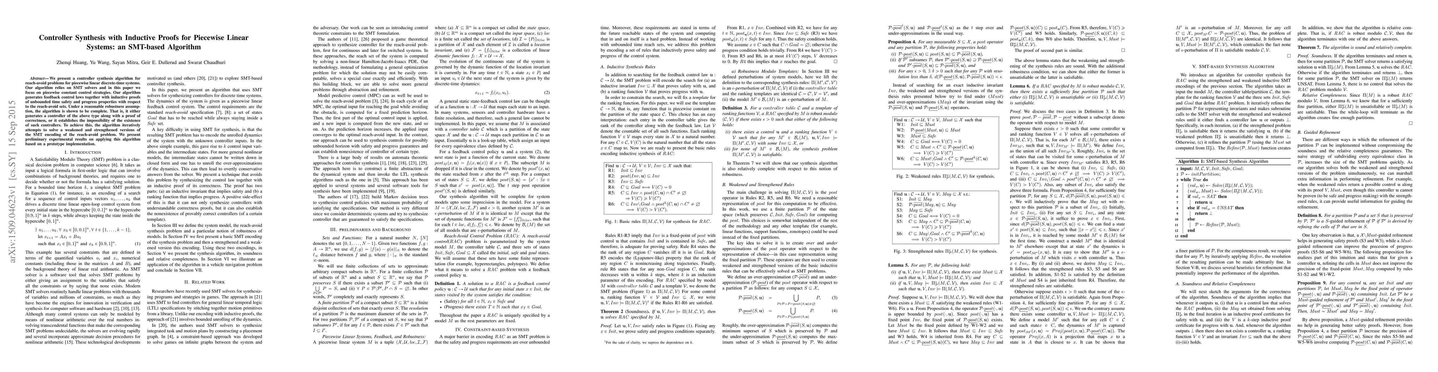 A new algorithm synthesizes controllers for piecewise linear systems using inductive proofs, demonstrating completeness under a robustness assumption, and providing feedback control laws with proof of correctness or impossibility.