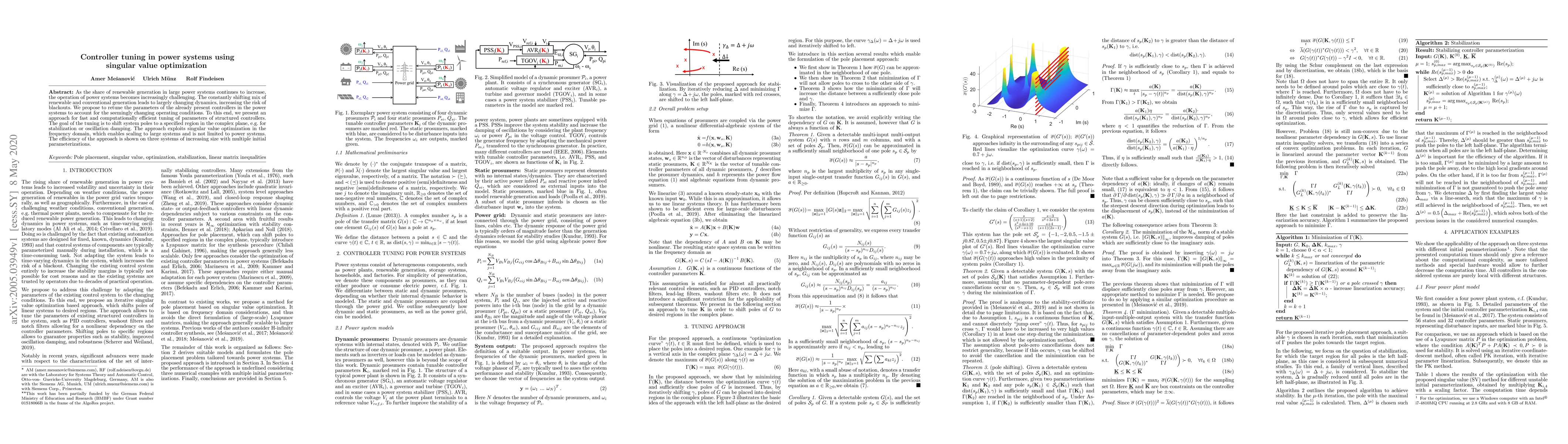 This paper proposes a method for tuning controllers in power systems using singular value optimization to adapt to the changing dynamics caused by increased renewable generation. The approach aims to shift system poles for stabilization or damping oscillations, demonstrated on systems of varying sizes.