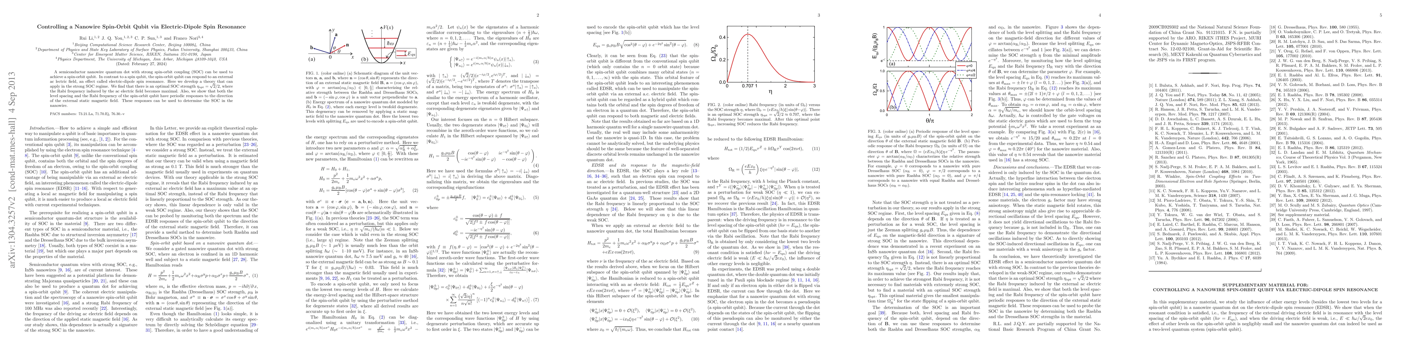 This paper develops a theoretical framework for controlling a spin-orbit qubit in a semiconductor nanowire quantum dot via electric-dipole spin resonance. It identifies an optimal spin-orbit coupling strength where the Rabi frequency is maximized and demonstrates periodic responses to external magnetic fields that can determine the spin-orbit coupling.