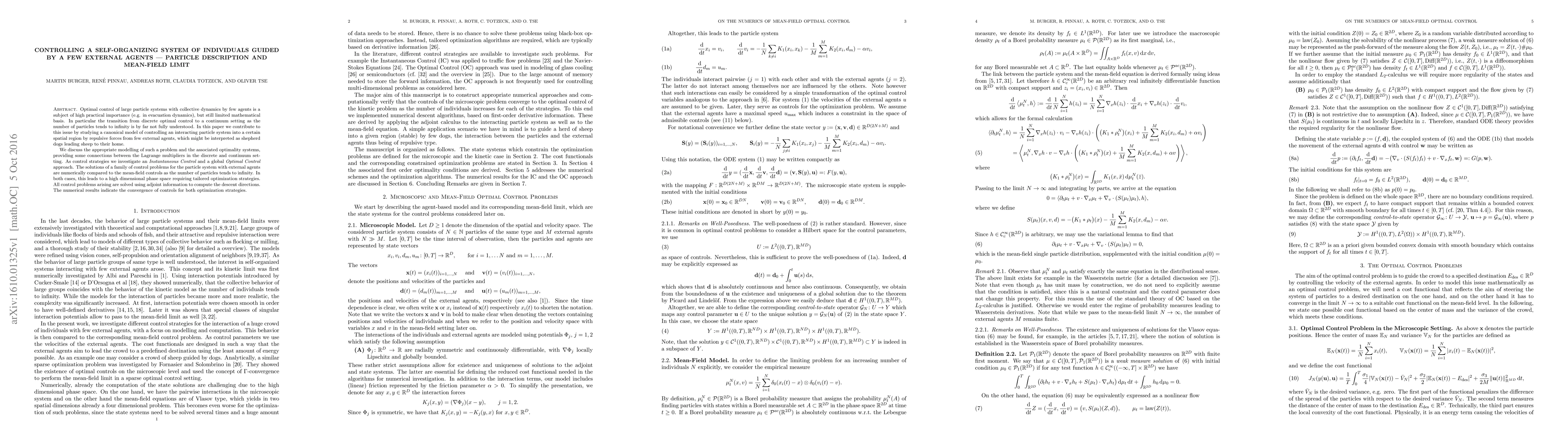 Optimal control of large particle systems with collective dynamics by few agents is a subject of high practical importance (e.g. in evacuation dynamics), but still limited mathematical basis. In particular the transition from discrete optimal control to a continuum setting as the number of particles tends to infinity is by far not fully understood. In this paper we contribute to this issue by studying a canonical model of controlling an interacting particle system into a certain spatial region by repulsive forces from few external agents, which might be interpreted as shepherd dogs leading sheep to their home. We discuss the appropriate modelling of such a problem and the associated optimality systems, providing some connections between the Lagrange multipliers in the discrete and continuum setting. As control strategies we investigate an Instantaneous Control and a global Optimal Control approach. The solutions of a family of control problems for the particle system with external agents are numerically compared to the mean-field controls as the number of particles tends to infinity. In both cases, this leads to a high dimensional phase space requiring tailored optimization strategies. All control problems arising are solved using adjoint information to compute the descent directions. The numerical results indicate the convergence of controls for both optimization strategies.