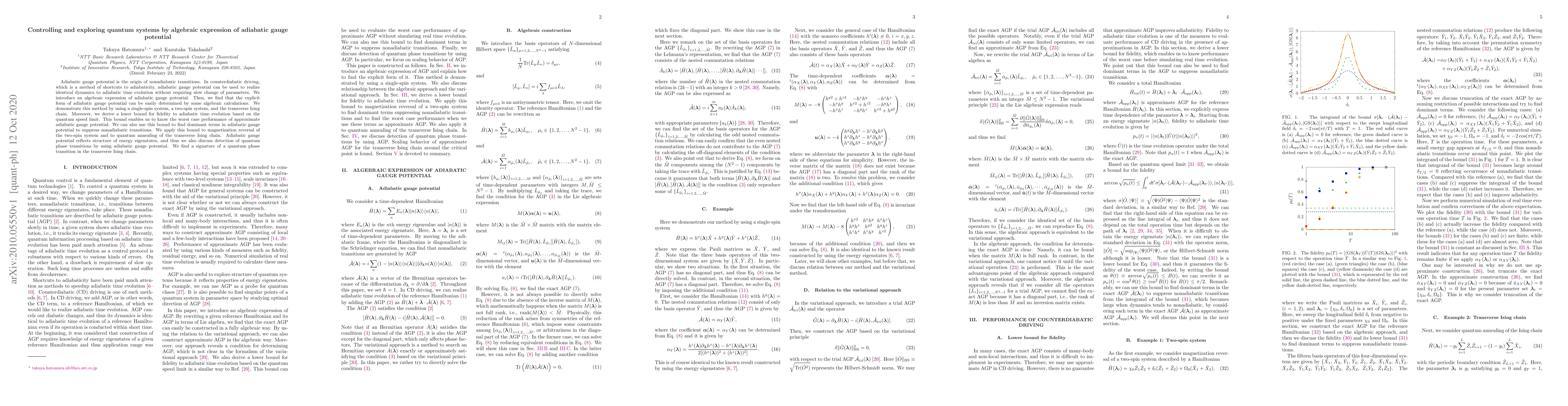 Researchers develop an algebraic expression for adiabatic gauge potential to control quantum systems without requiring slow parameter changes, enabling faster quantum computing and improved fidelity to adiabatic time evolution.
