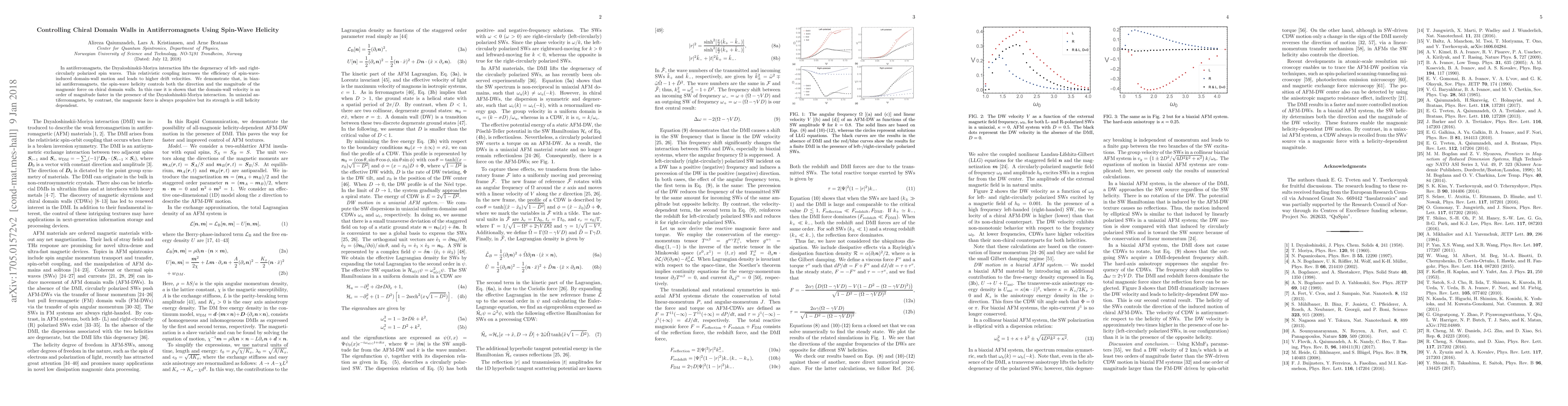 Summary: The paper demonstrates that spin-wave helicity governs the motion and force on chiral domain walls in antiferromagnets, with biaxial systems showing helicity-controlled direction and magnitude of magnonic force, and uniaxial systems exhibiting helicity-dependent propulsive force.