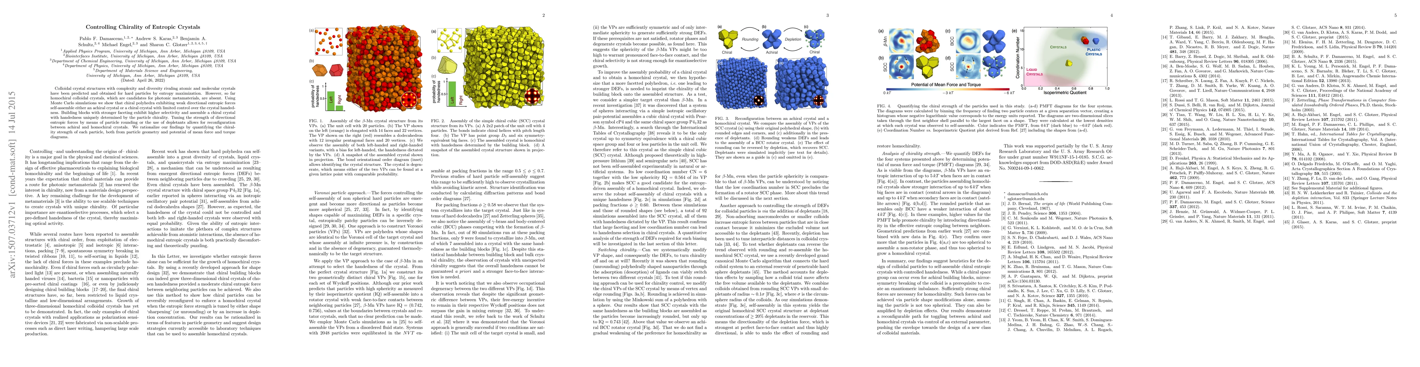 Colloidal crystal structures with complexity and diversity rivaling atomic and molecular crystals have been predicted and obtained for hard particles by entropy maximization. However, so far homochiral colloidal crystals, which are candidates for photonic metamaterials, are absent. Using Monte Carlo simulations we show that chiral polyhedra exhibiting weak directional entropic forces self-assemble either an achiral crystal or a chiral crystal with limited control over the crystal handedness. Building blocks with stronger faceting exhibit higher selectivity and assemble a chiral crystal with handedness uniquely determined by the particle chirality. Tuning the strength of directional entropic forces by means of particle rounding or the use of depletants allows for reconfiguration between achiral and homochiral crystals. We rationalize our findings by quantifying the chirality strength of each particle, both from particle geometry and potential of mean force and torque diagrams.