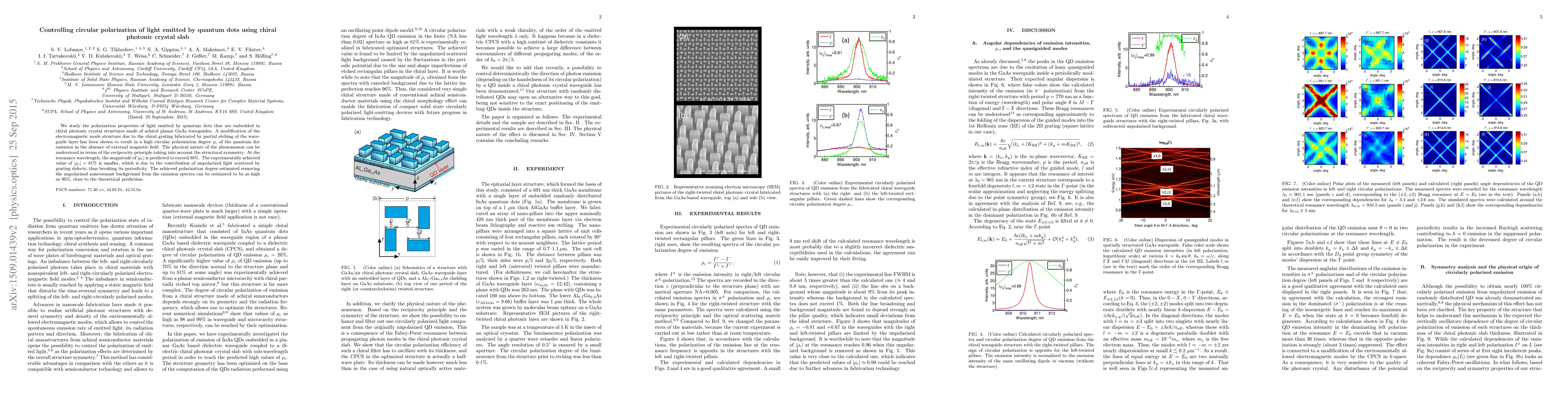 This paper investigates how embedding quantum dots in chiral photonic crystal slabs can control the circular polarization of emitted light, achieving a high degree of circular polarization (up to 98% theoretically) by modifying the electromagnetic mode structure through a chiral grating. Experimental results show a polarization degree of 81%, which improves to 96% when accounting for nonresonant background scattering.
