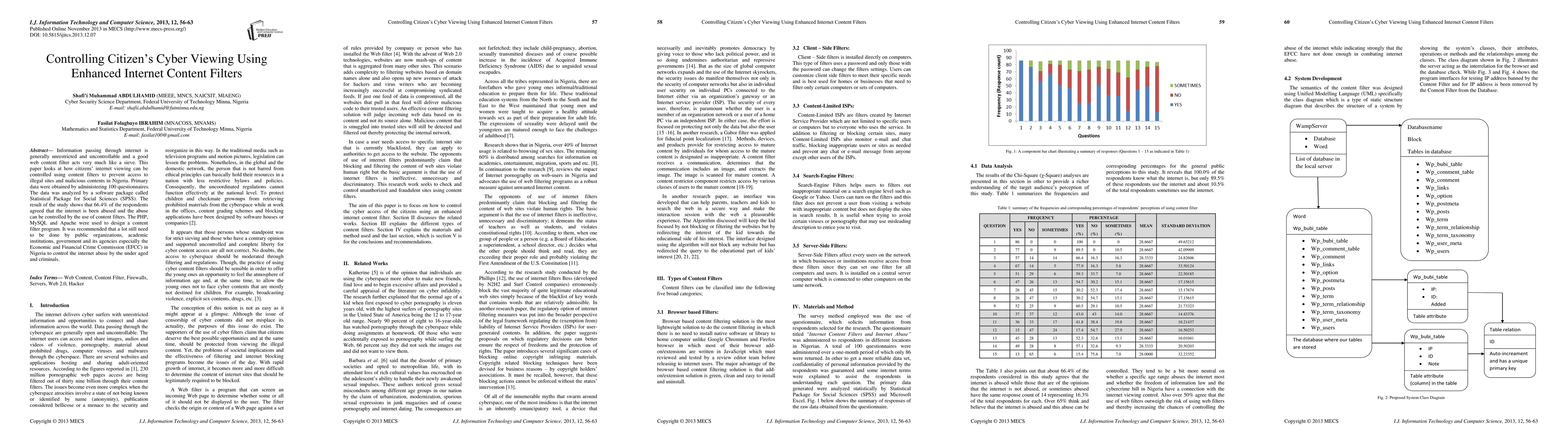 A study in Nigeria found that 66.4% of respondents agreed that internet abuse can be controlled with content filters. A content filter program was designed to prevent access to illegal sites and malicious contents.