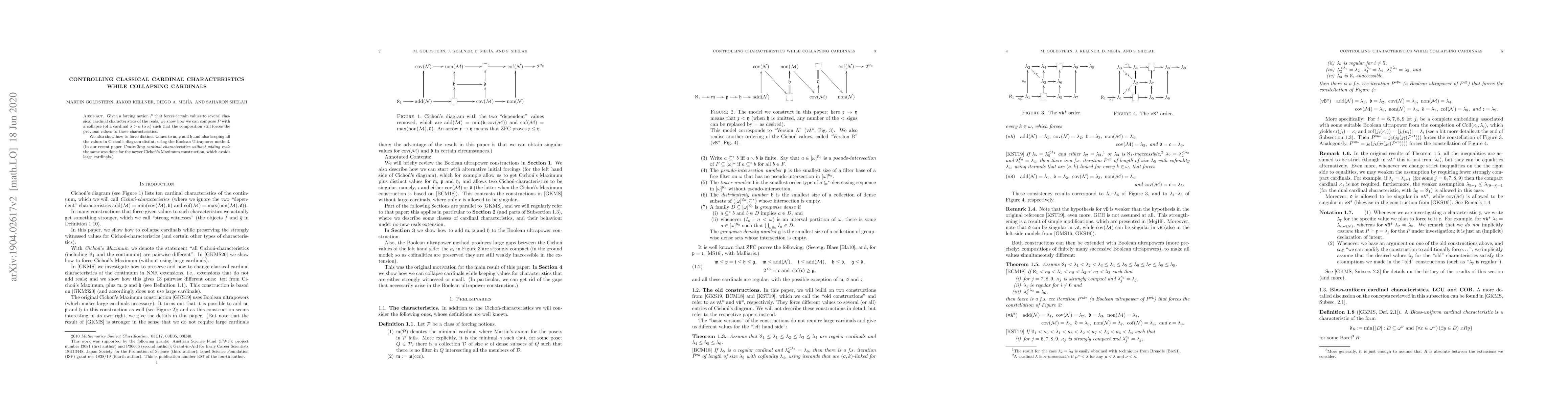 This paper demonstrates how to combine a forcing notion with a collapse to maintain specific values for classical cardinal characteristics of the reals while collapsing a cardinal. It also uses the Boolean Ultrapower method to ensure distinct values for $\mathfrak m$, $\mathfrak p$, and $\mathfrak h$, and all values in Cichoń's diagram remain distinct.