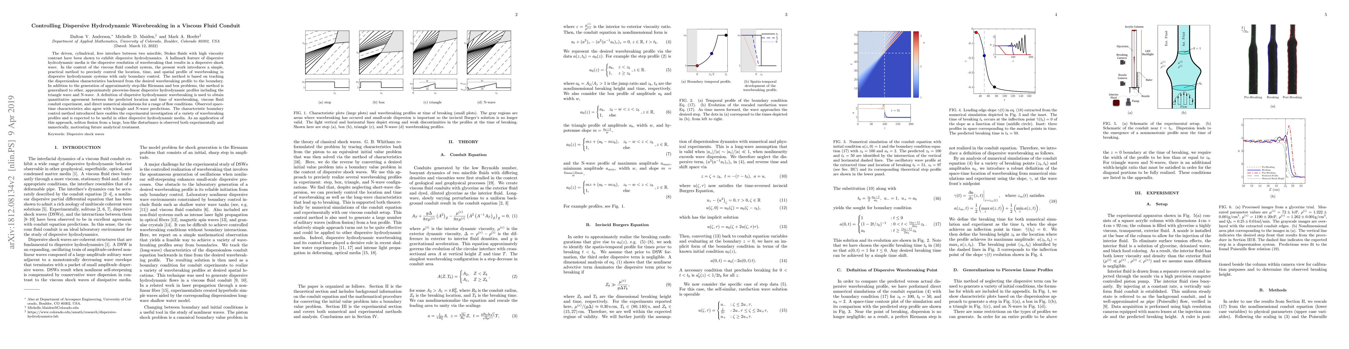 The driven, cylindrical, free interface between two miscible, Stokes fluids with high viscosity contrast have been shown to exhibit dispersive hydrodynamics. A hallmark feature of dispersive hydrodynamic media is the dispersive resolution of wavebreaking that results in a dispersive shock wave. In the context of the viscous fluid conduit system, the present work introduces a simple, practical method to precisely control the location, time, and spatial profile of wavebreaking in dispersive hydrodynamic systems with only boundary control. The method is based on tracking the dispersionless characteristics backward from the desired wavebreaking profile to the boundary. In addition to the generation of approximately step-like Riemann and box problems, the method is generalized to other, approximately piecewise-linear dispersive hydrodynamic profiles including the triangle wave and N-wave. A definition of dispersive hydrodynamic wavebreaking is used to obtain quantitative agreement between the predicted location and time of wavebreaking, viscous fluid conduit experiment, and direct numerical simulations for a range of flow conditions. Observed space-time characteristics also agree with triangle and N-wave predictions. The characteristic boundary control method introduced here enables the experimental investigation of a variety of wavebreaking profiles and is expected to be useful in other dispersive hydrodynamic media. As an application of this approach, soliton fission from a large, box-like disturbance is observed both experimentally and numerically, motivating future analytical treatment.