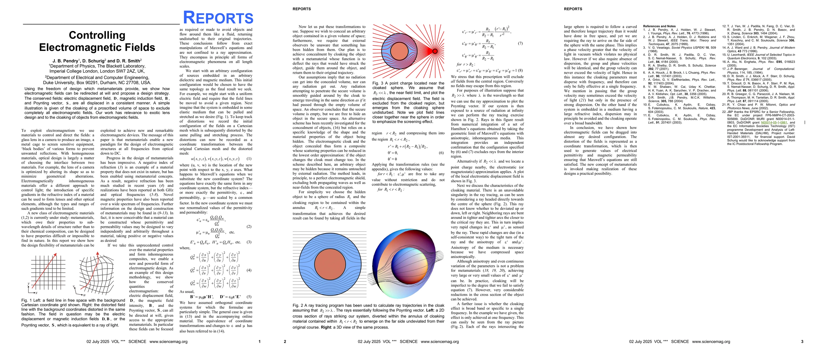 Using the freedom of design which metamaterials provide, we show how electromagnetic fields can be redirected at will and propose a design strategy. The conserved fields: electric displacement field, D, magnetic induction field, B, and Poynting vector, S, are all displaced in a consistent manner. A simple illustration is given of the cloaking of a proscribed volume of space to exclude completely all electromagnetic fields. Our work has relevance to exotic lens design and to the cloaking of objects from electromagnetic fields