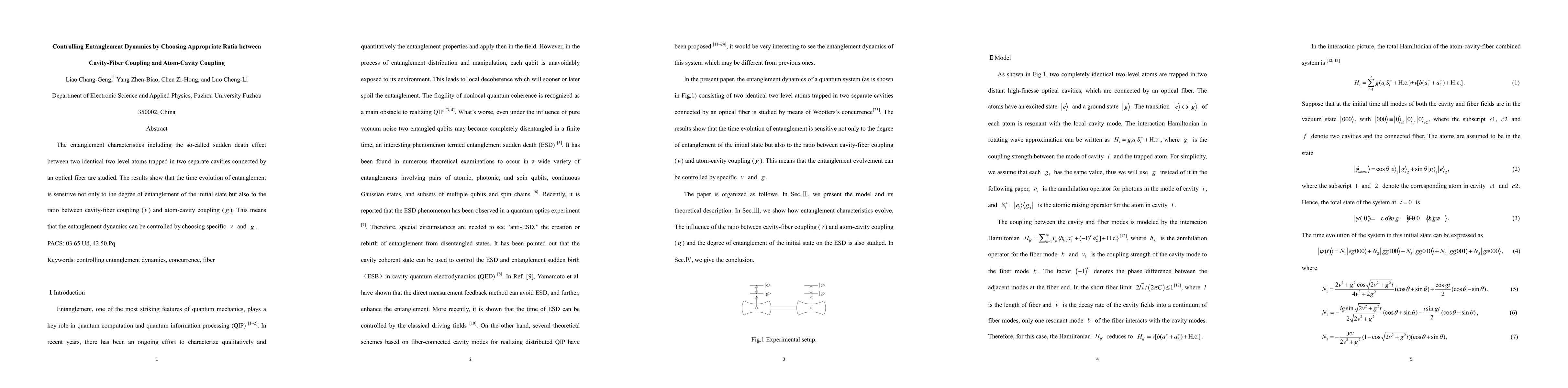 This paper investigates how the entanglement dynamics between two atoms in separate cavities connected by an optical fiber are influenced by the ratio between cavity-fiber coupling and atom-cavity coupling. The study reveals that the entanglement evolution, including the sudden death effect, can be controlled by adjusting this ratio.