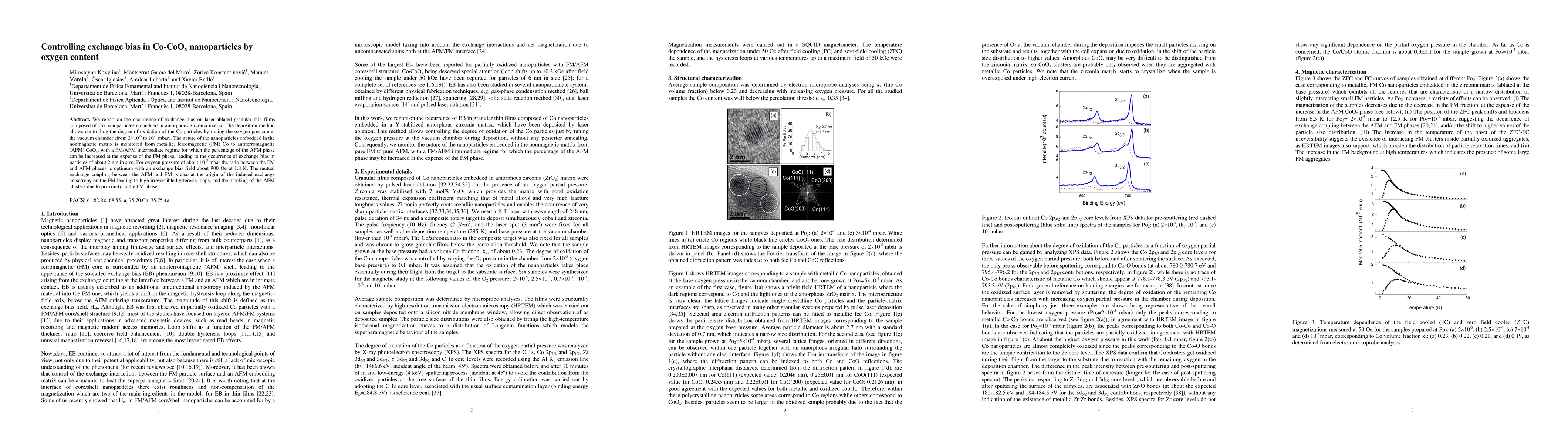 This paper investigates the control of exchange bias in Co-CoOx nanoparticles by adjusting oxygen content, finding that optimal conditions for exchange bias occur at an oxygen pressure of 10^-3 mbar, resulting in a significant exchange bias field of 900 Oe at 1.8 K. The study highlights the influence of oxygen pressure on the transition from ferromagnetic to antiferromagnetic phases in Co nanoparticles.