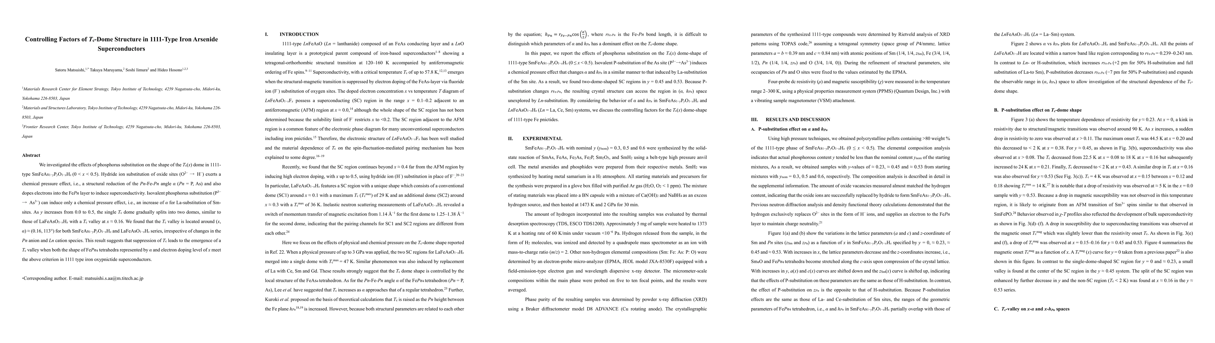 This study investigates the impact of phosphorus substitution and hydride doping on the Tc dome structure in 1111-type iron arsenide superconductors. The research reveals that both phosphorus substitution and hydride doping influence the Tc dome shape, leading to the emergence of a Tc valley when specific conditions regarding the FePn4 tetrahedra angle and electron doping level are met.