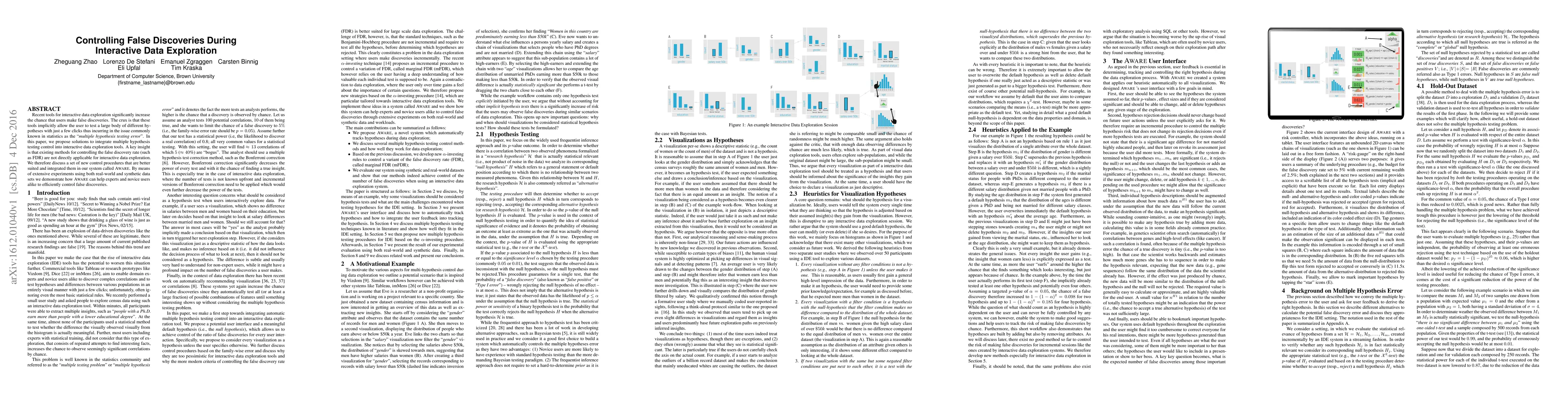 This paper proposes new methods to control false discoveries in interactive data exploration, addressing the multiple hypothesis testing error. It introduces a system called Aware that integrates these new control procedures, demonstrating their effectiveness in reducing false discoveries through experiments with real and synthetic data sets.