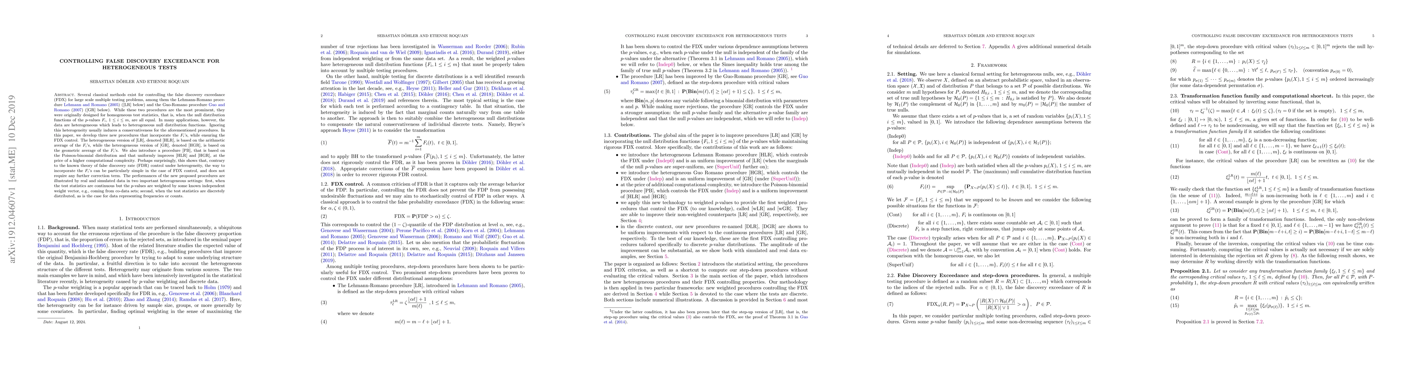 This paper develops three new procedures to control false discovery exceedance (FDX) for heterogeneous multiple testing problems, where the null distribution functions differ. The proposed methods—HLR, HGR, and PB—are extensions of existing procedures that account for heterogeneity, with PB offering improved performance at a higher computational cost.