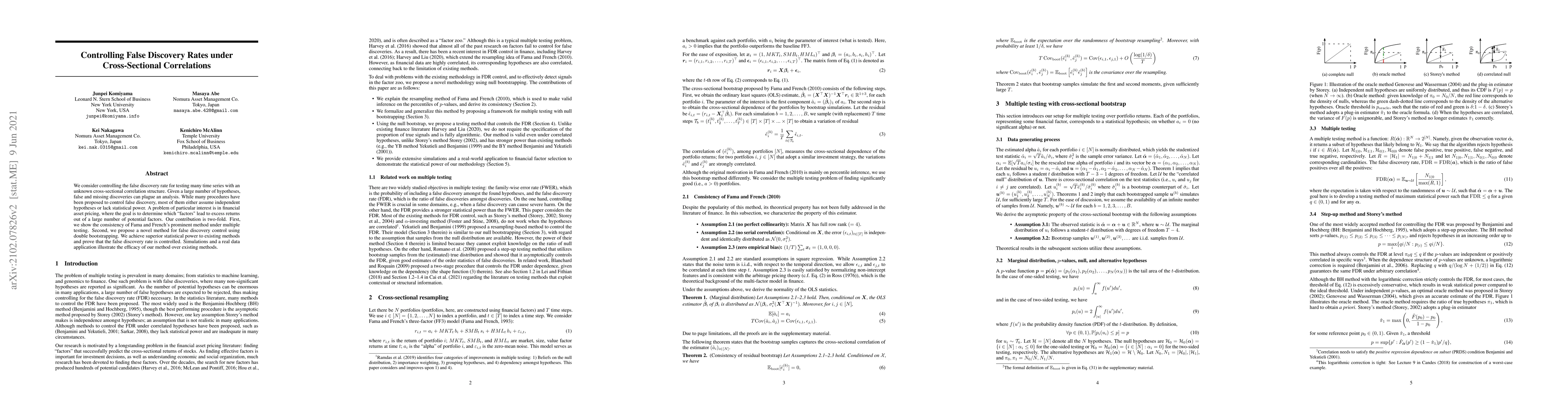 This paper proposes a novel method for controlling false discovery rates in the presence of cross-sectional correlations among time series, addressing the limitations of existing methods that assume independence. The authors demonstrate the consistency of Fama and French's method under multiple testing and introduce a double bootstrapping approach that achieves superior statistical power.