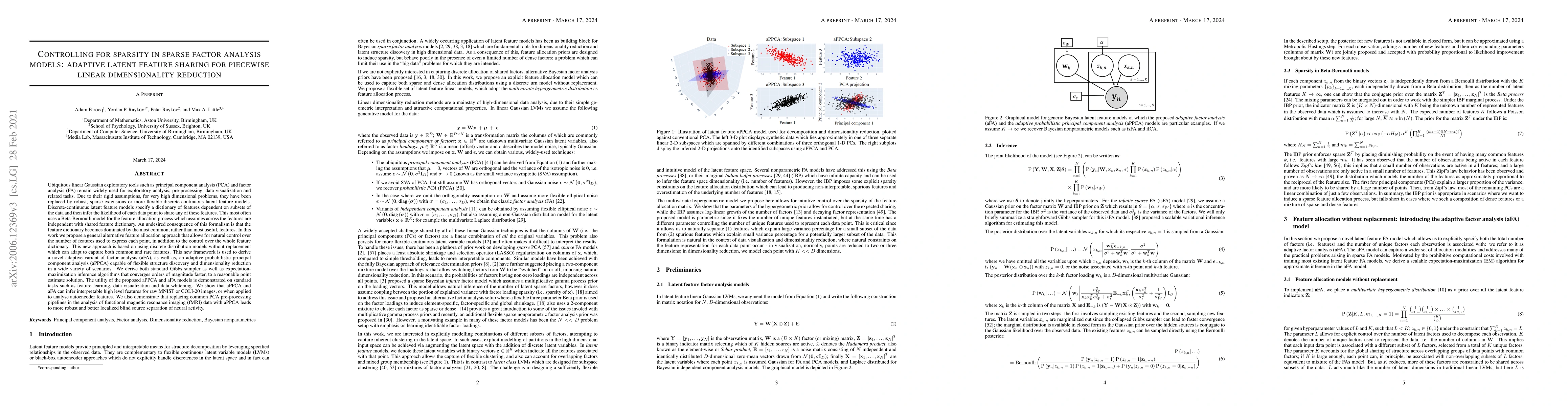 Researchers propose a flexible feature allocation model for sparse factor analysis models, enabling adaptive latent feature sharing for piecewise linear dimensionality reduction, with applications in PCA tasks and blind source separation.