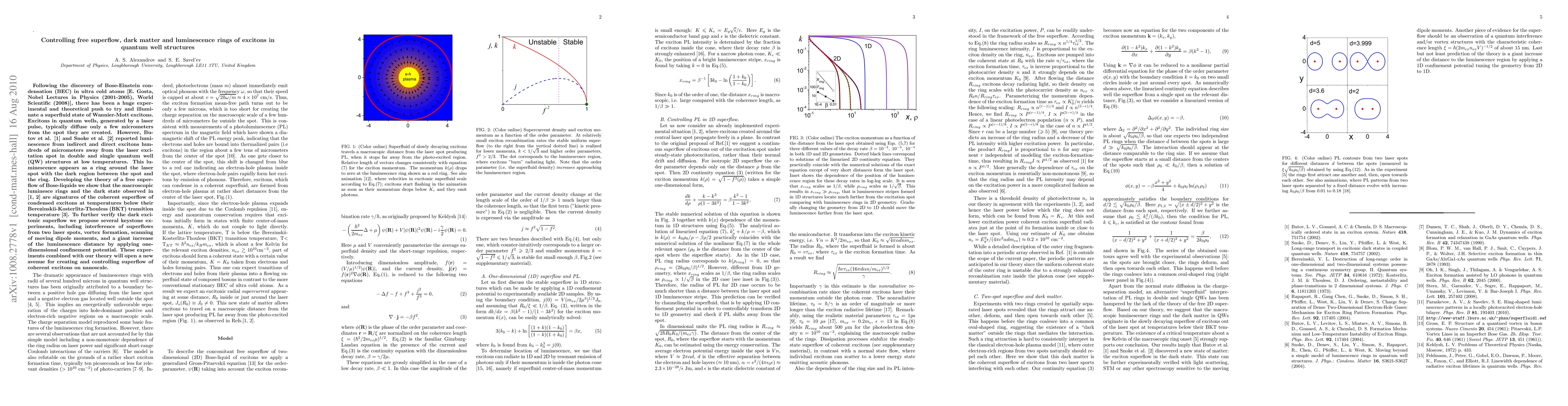 This paper explores the superfluid state of Wannier-Mott excitons in quantum well structures, demonstrating that luminescence rings and dark regions are signs of coherent superflow below the BKT transition temperature. Proposed experiments aim to verify and control this superflow, potentially opening new avenues for nanoscale excitonic manipulation.