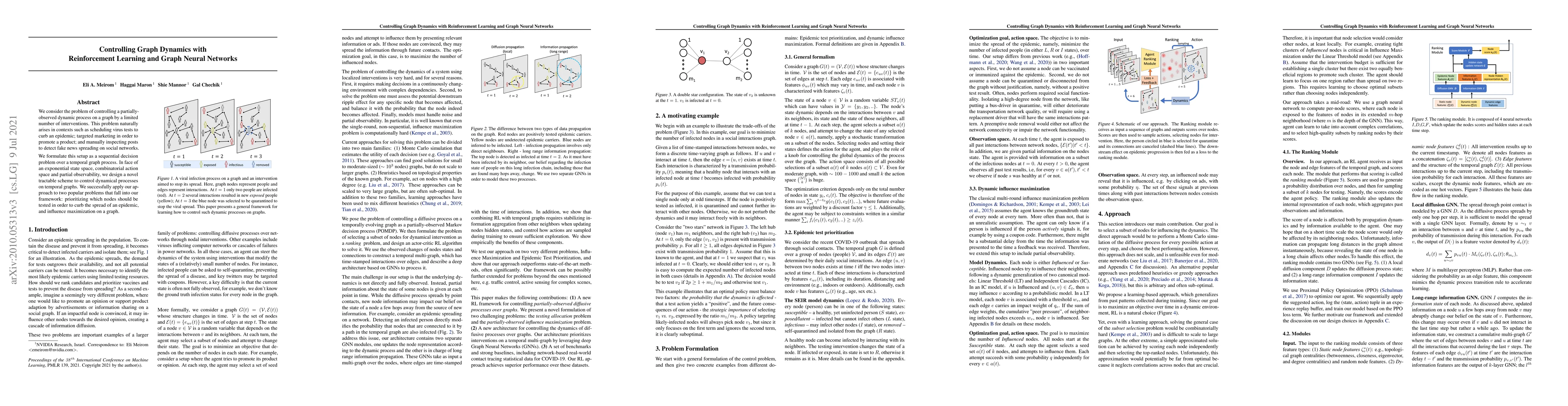 Researchers developed a novel method to control dynamic processes on graphs using reinforcement learning and graph neural networks, successfully applying it to curb the spread of an epidemic and influence maximization on social networks.