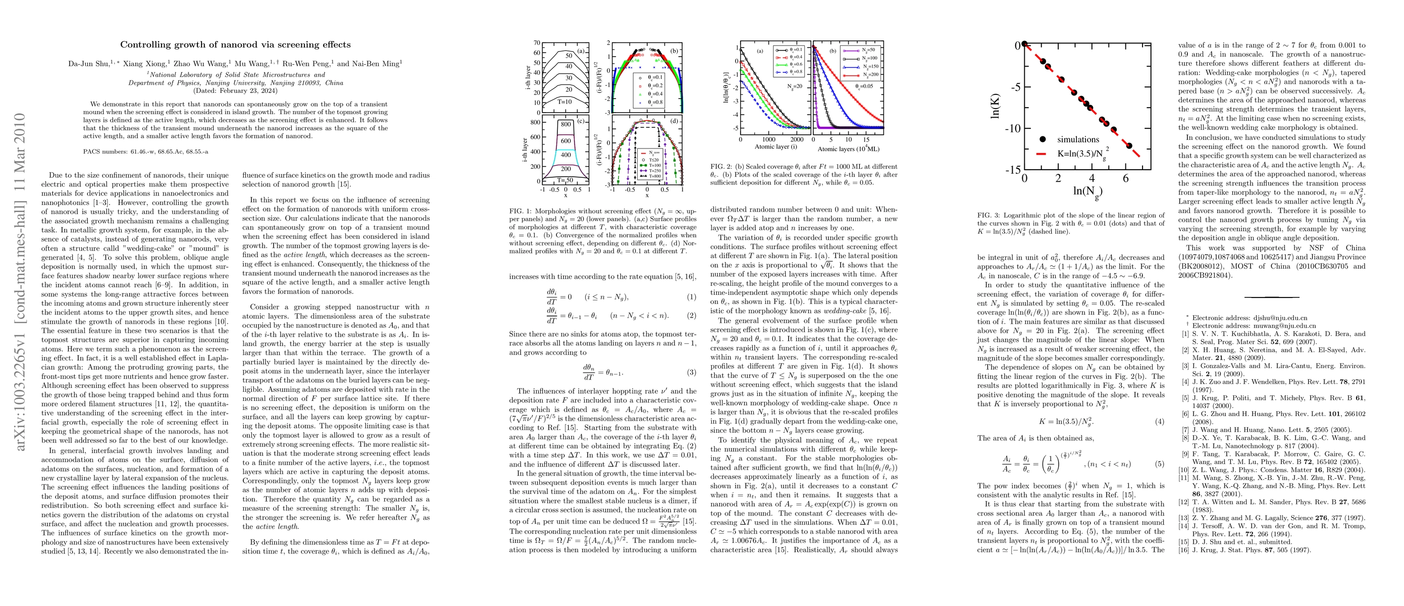 We demonstrate in this report that nanorods can spontaneously grow on the top of a transient mound when the screening effect is considered in island growth. The number of the topmost growing layers is defined as the active length, which decreases as the screening effect is enhanced. It follows that the thickness of the transient mound underneath the nanorod increases as the square of the active length, and a smaller active length favors the formation of nanorod.