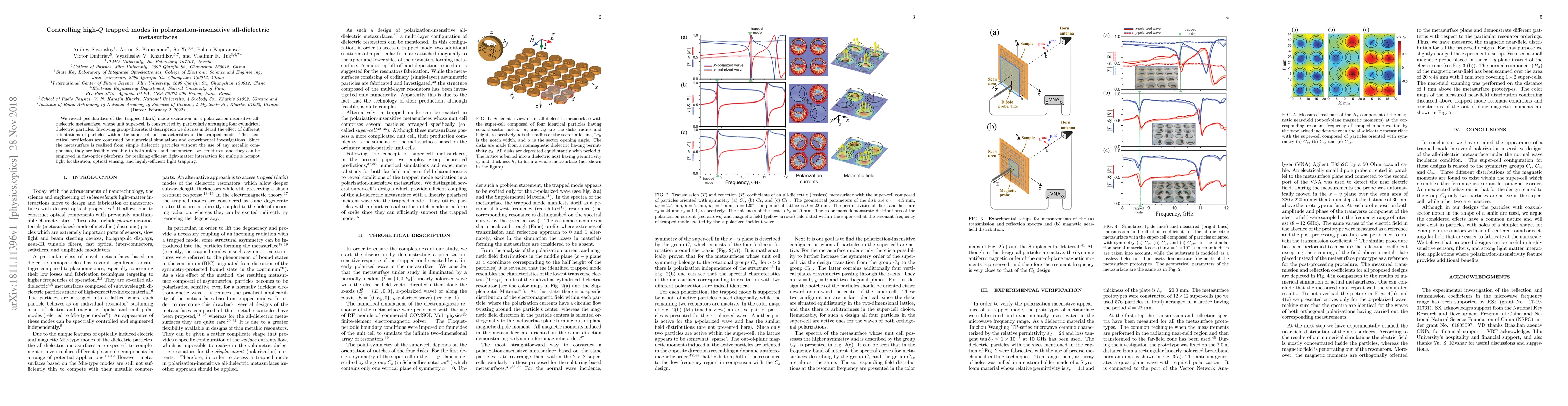 Researchers discovered a way to control trapped modes in polarization-insensitive all-dielectric metasurfaces using group-theoretical description, confirming theoretical predictions through simulations and experiments.